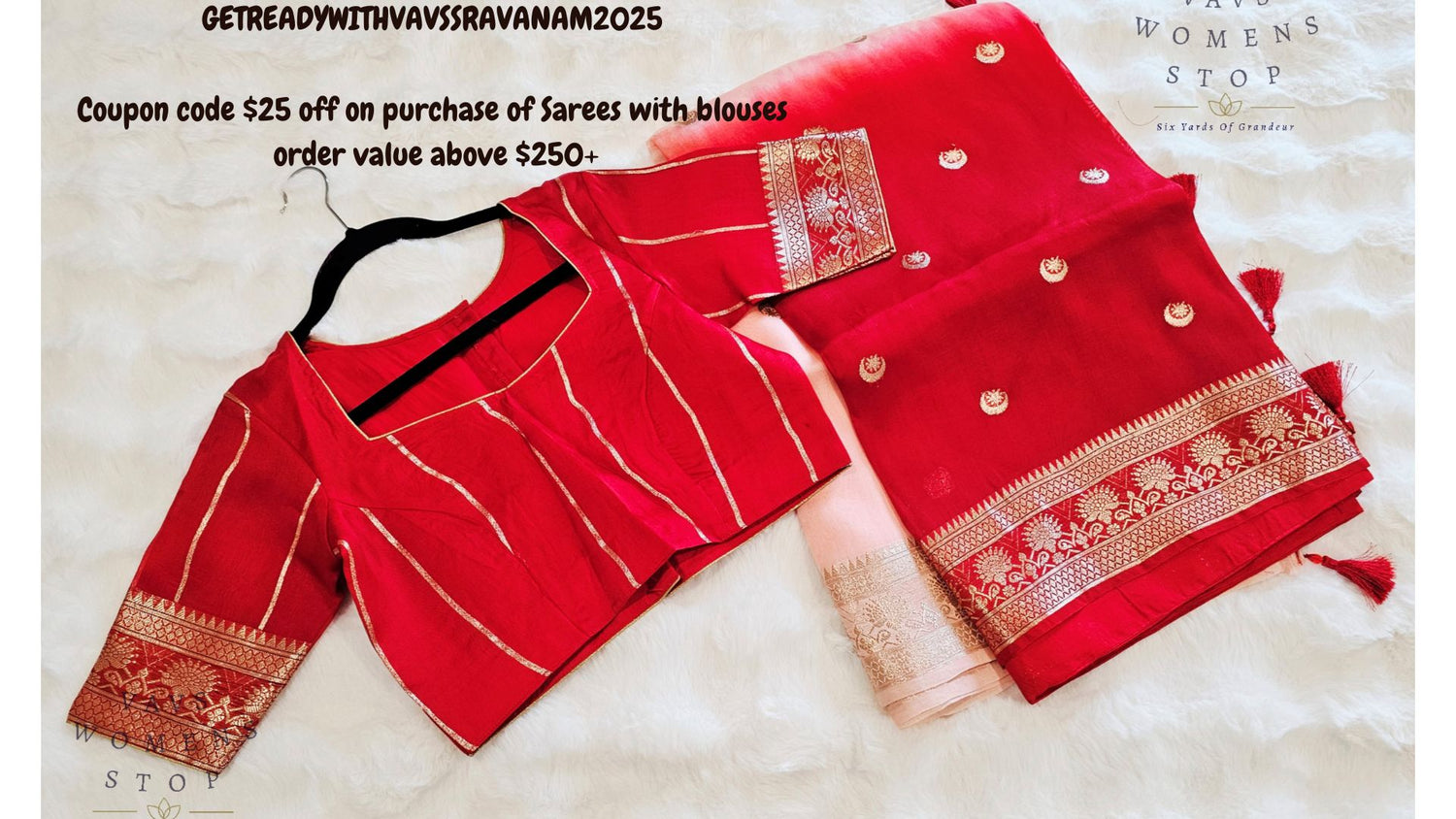 I ordered two blouses and a saree. They are absolutely beautiful! The craftsmanship is exemplary. The blouses are tailored to fit just right. VAVS has become my go-to store for special occasions and all things Indian.