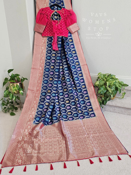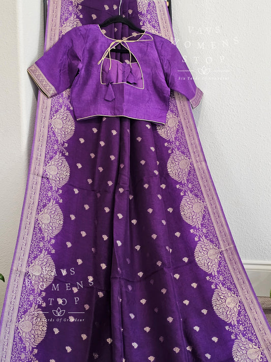 Blended Soft Warm Linen Benarasi Style Saree - Blouse