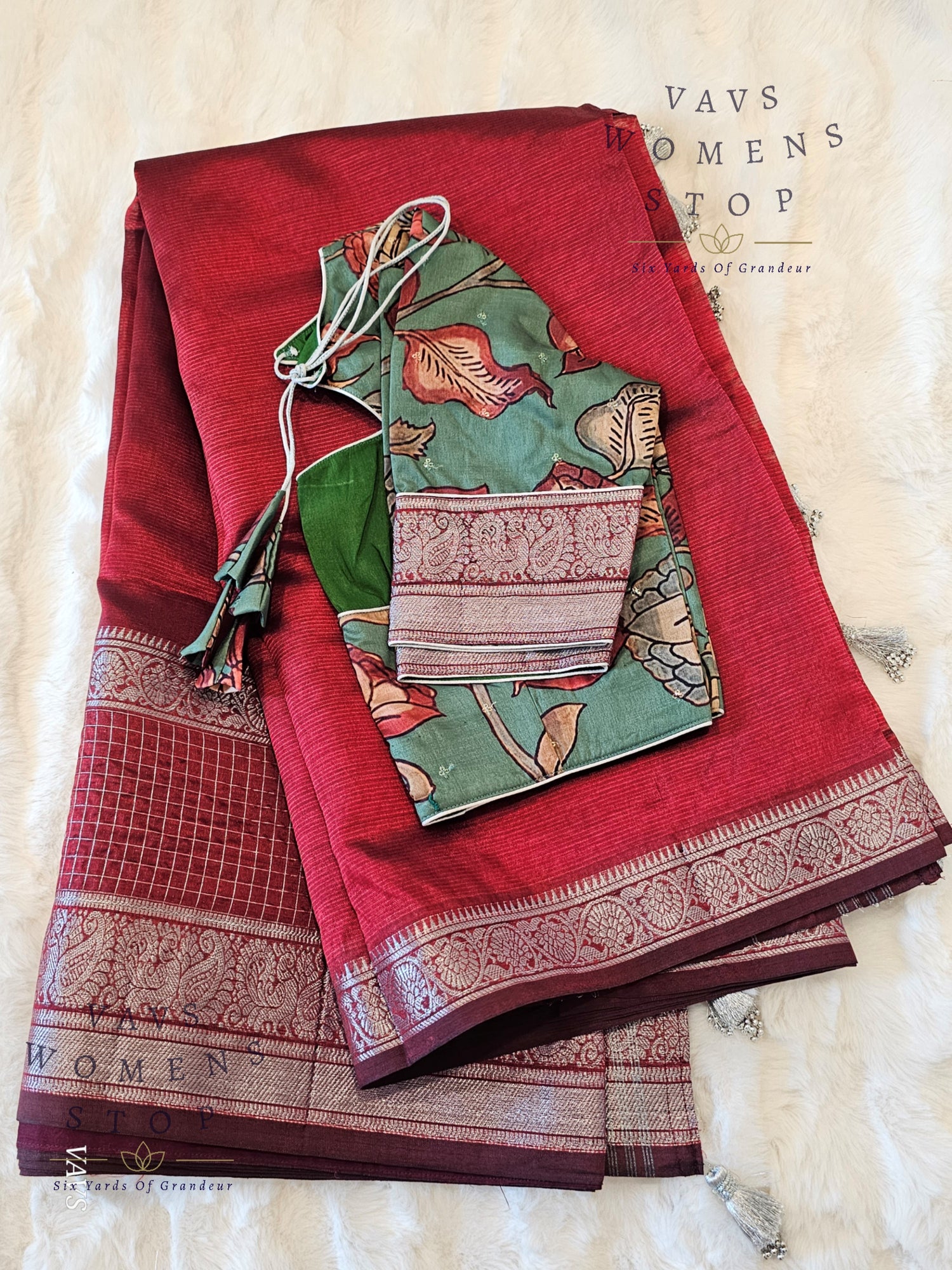 Thank you so much for the beautiful saree! It’s absolutely stunning. The Kalamkari blouse design and saree colour are just perfect, and I can’t wait to wear it and cherish it for years to come. Once again, Thank you VAVS Women’s Stop for the elegant Mangalagiri Patterned Soft Organza Style Saree with Kalamkari Blouse!