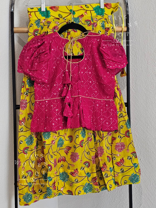 Semi Kanchi Pattu Silk Lehenga Set for Girls – Traditional Pavadai for Ages 6 to 7 | Ready to Ship from USA
