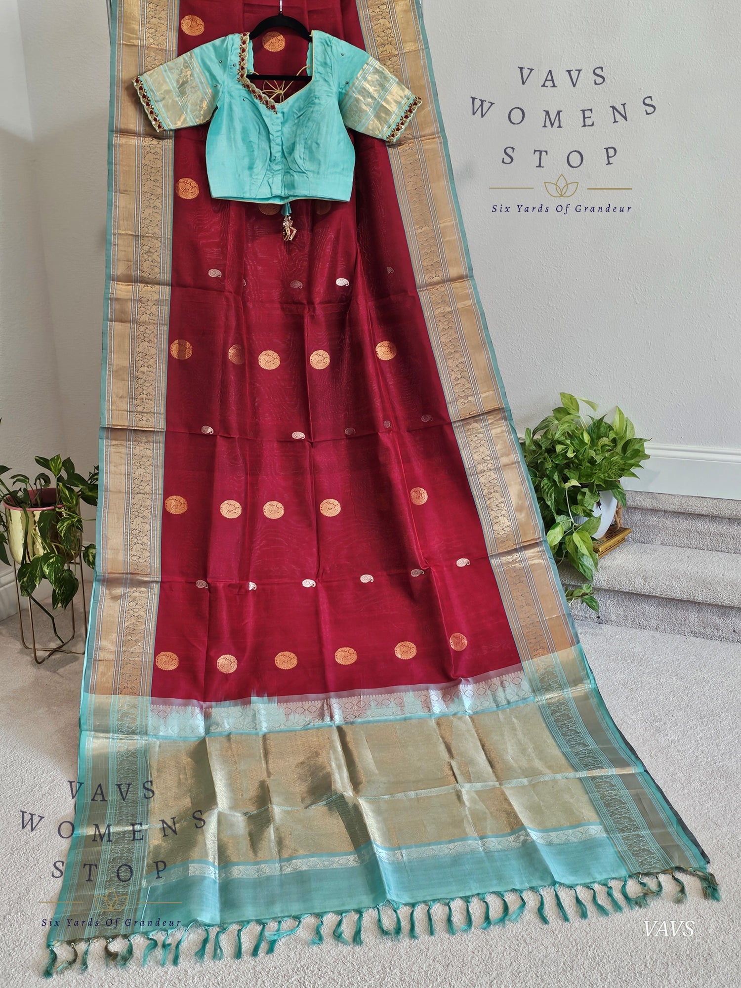 Authentic Pure Silk by Silk Handloom Saree with Stitched Maggam Work Blouse – Wedding & Festive Wear – Ready to Ship from Prosper, Texas USA
