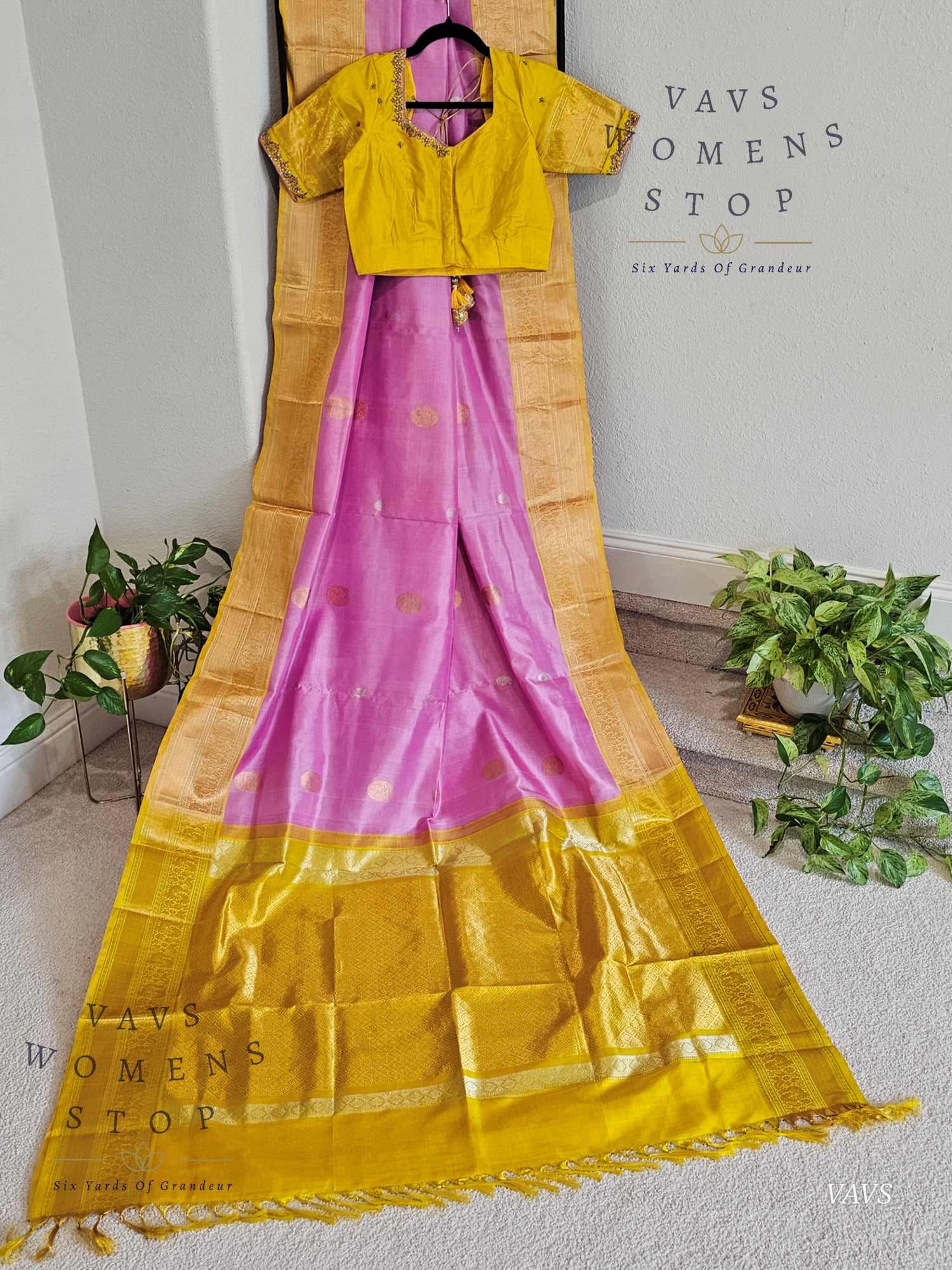 Authentic Pure Silk by Silk Handloom Saree with Stitched Maggam Work Blouse – Wedding & Festive Wear – Ready to Ship from Prosper, Texas USA
