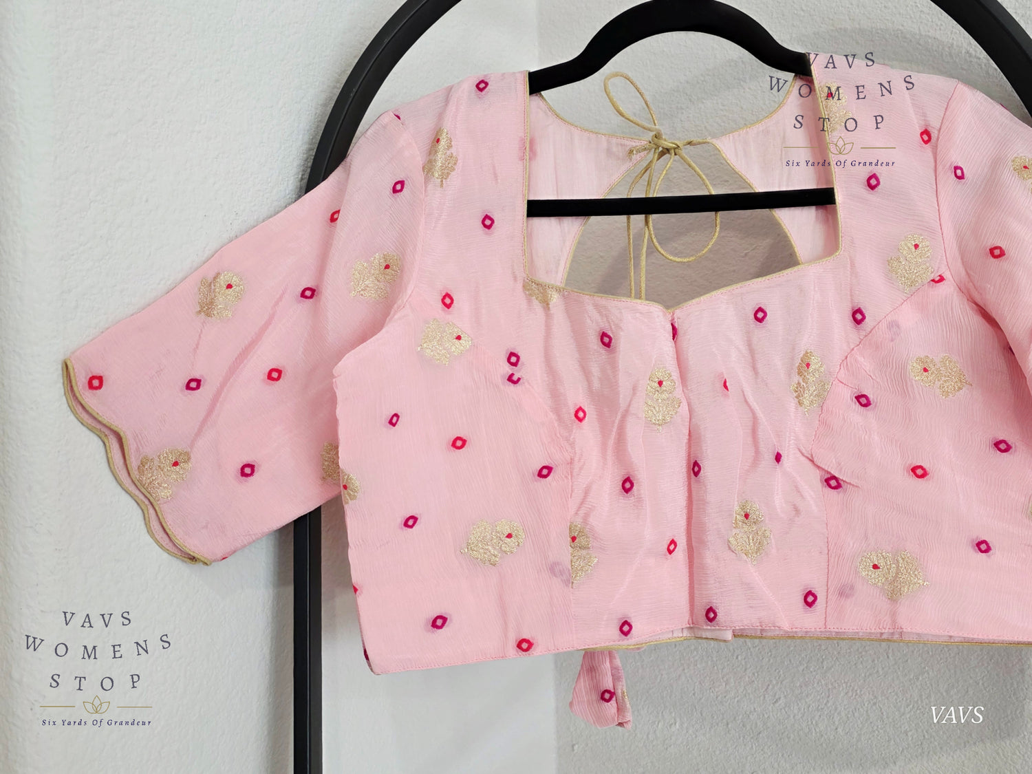 Baby Pink Shade Munga Crepe Silk Stitched Blouse