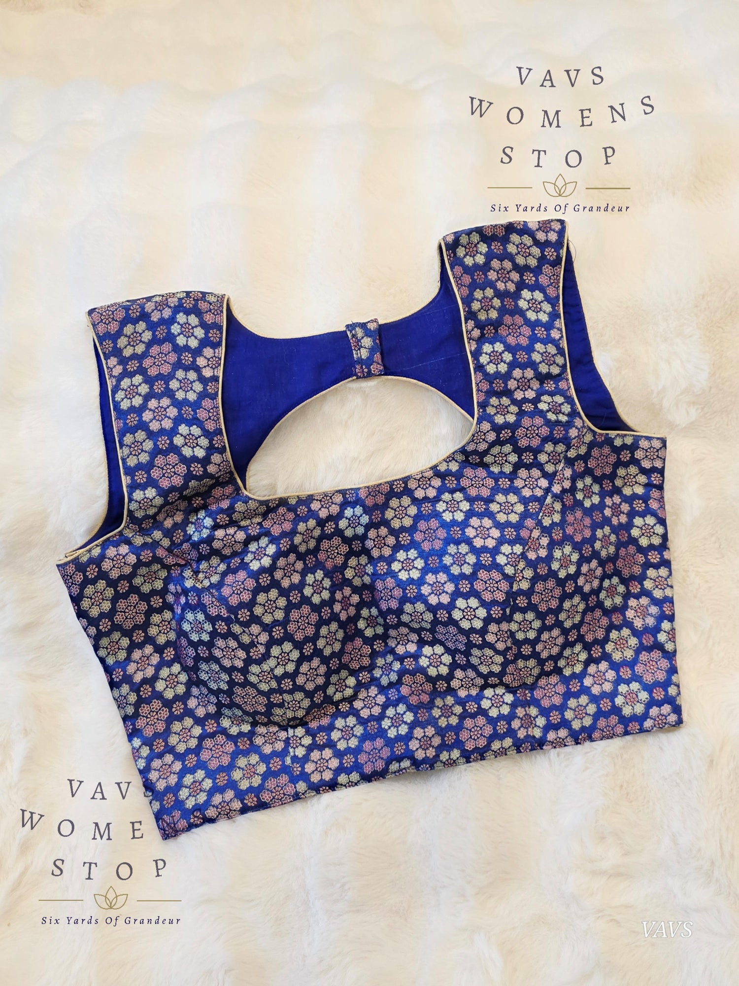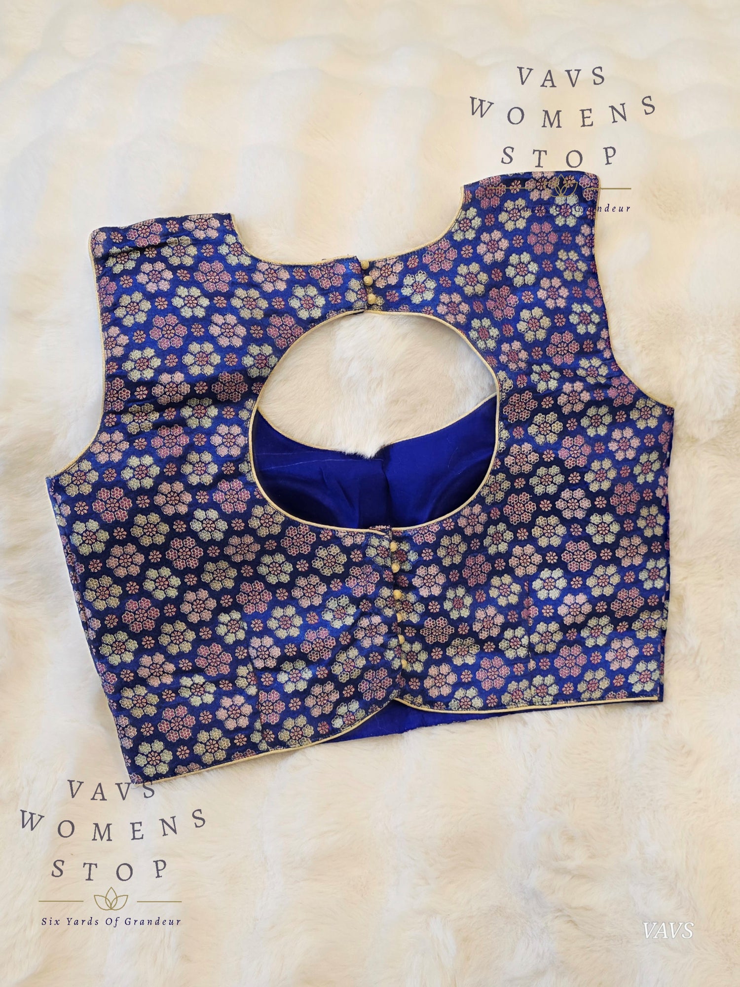 Fabric: Blue Benarasi Brocade Sleeveless Stitched Blouse