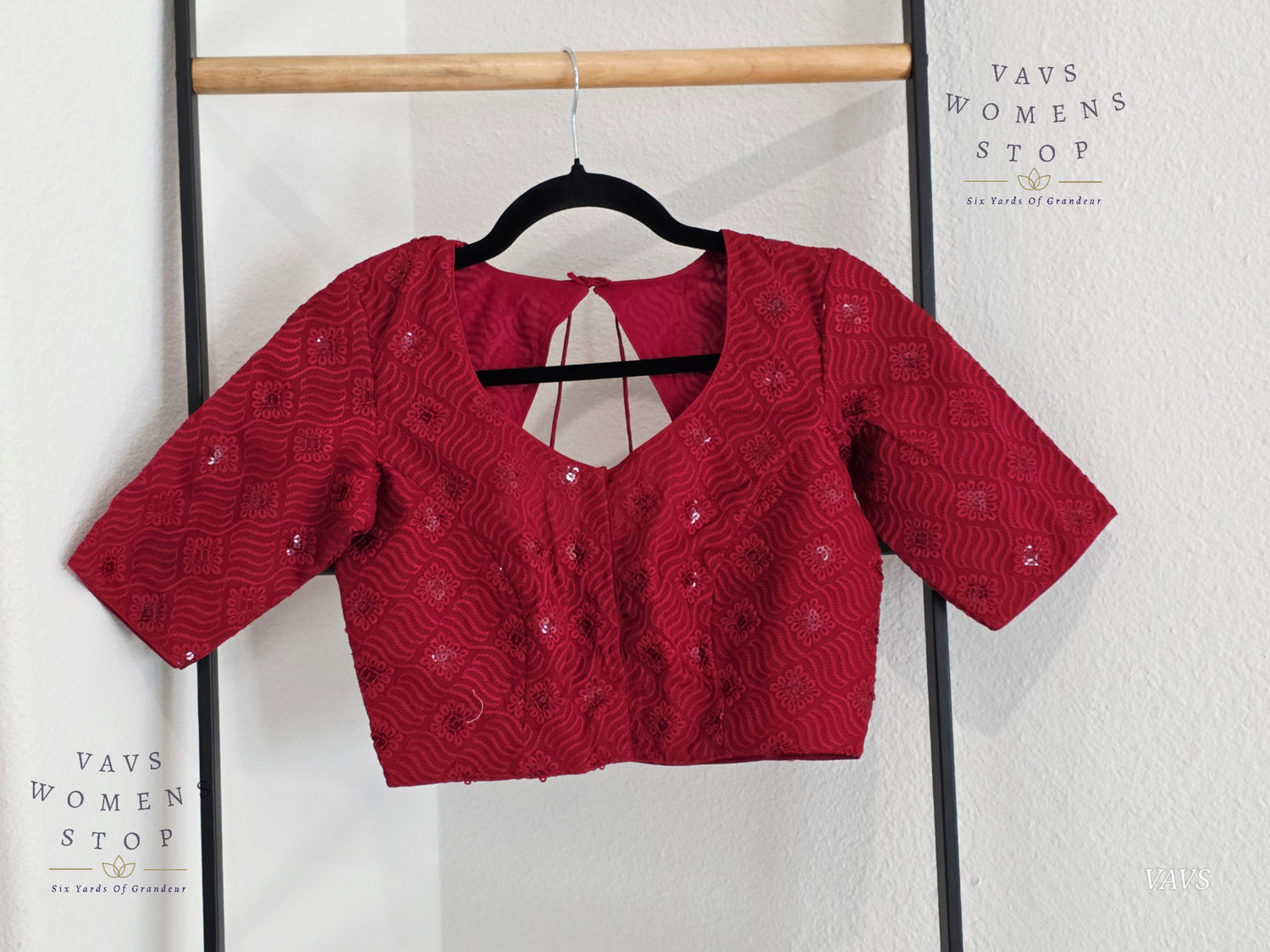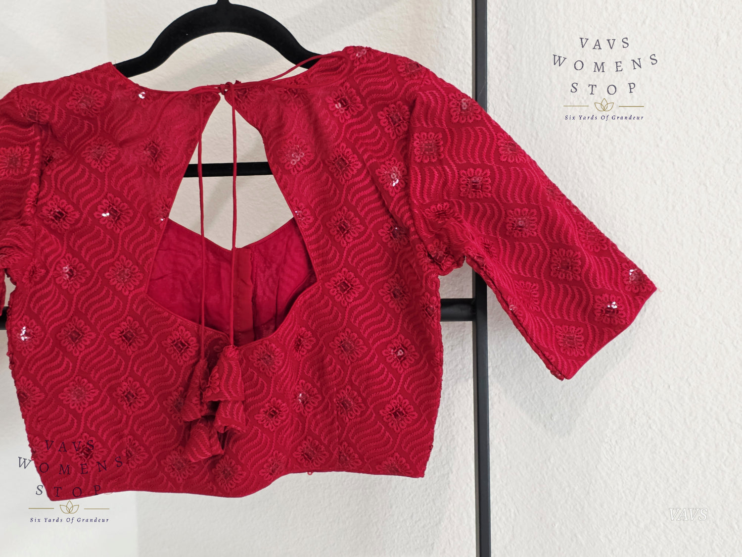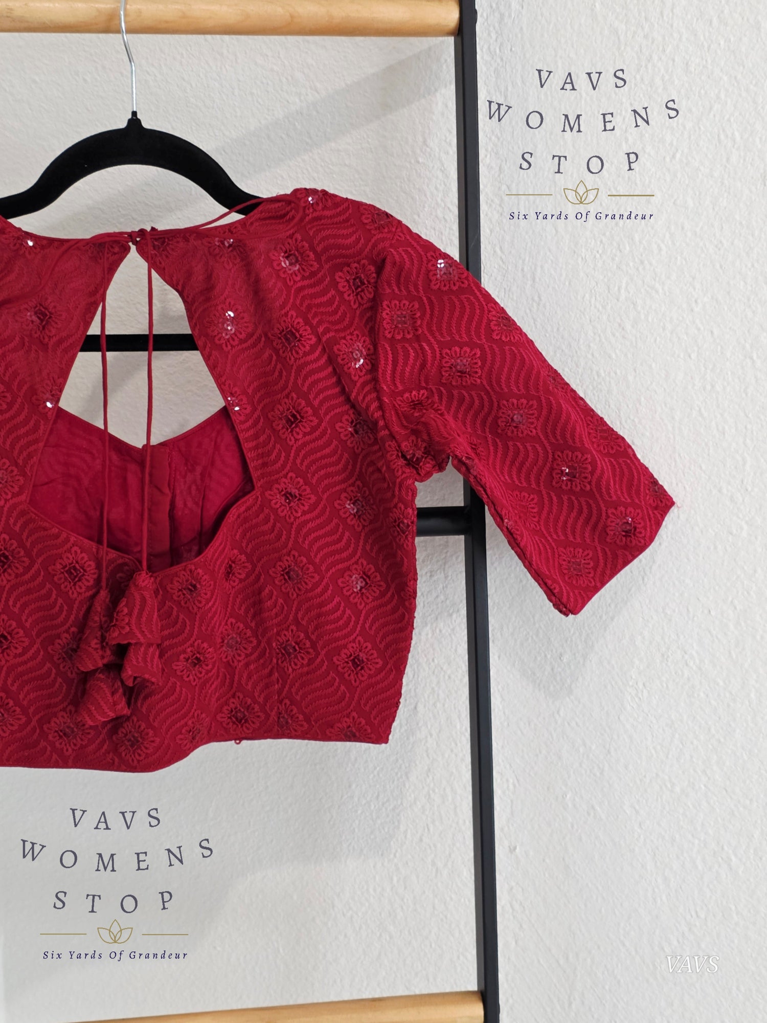 Burgundy Shade Georgette Chikankari Stitched Blouse
