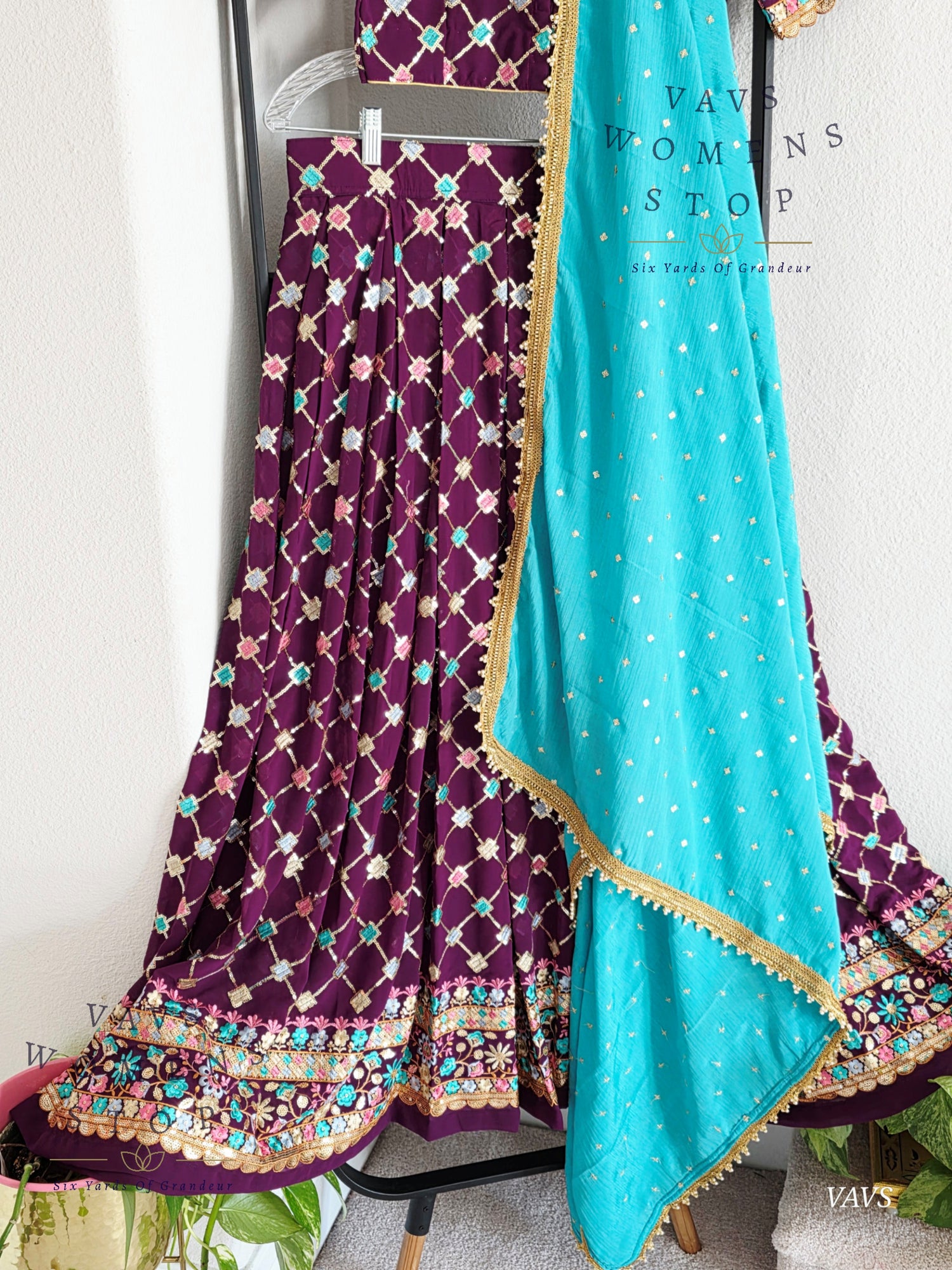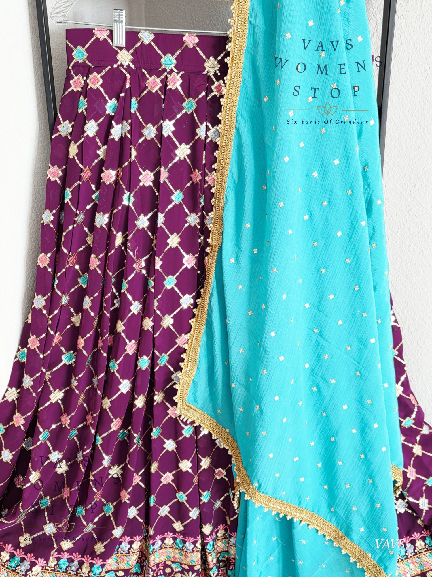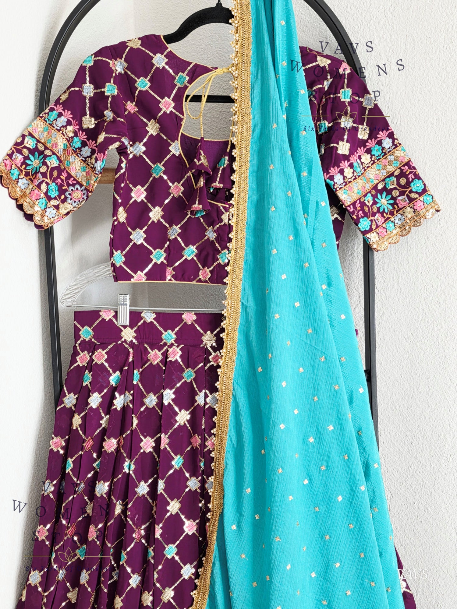 Designer Georgette Sequins Half Saree/ Lehenga Set