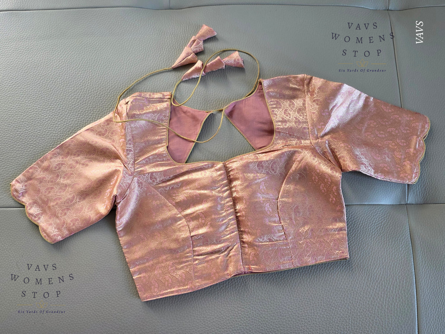 Dusty Pink Pure Benarasi Brocade Silk Stitched Blouse