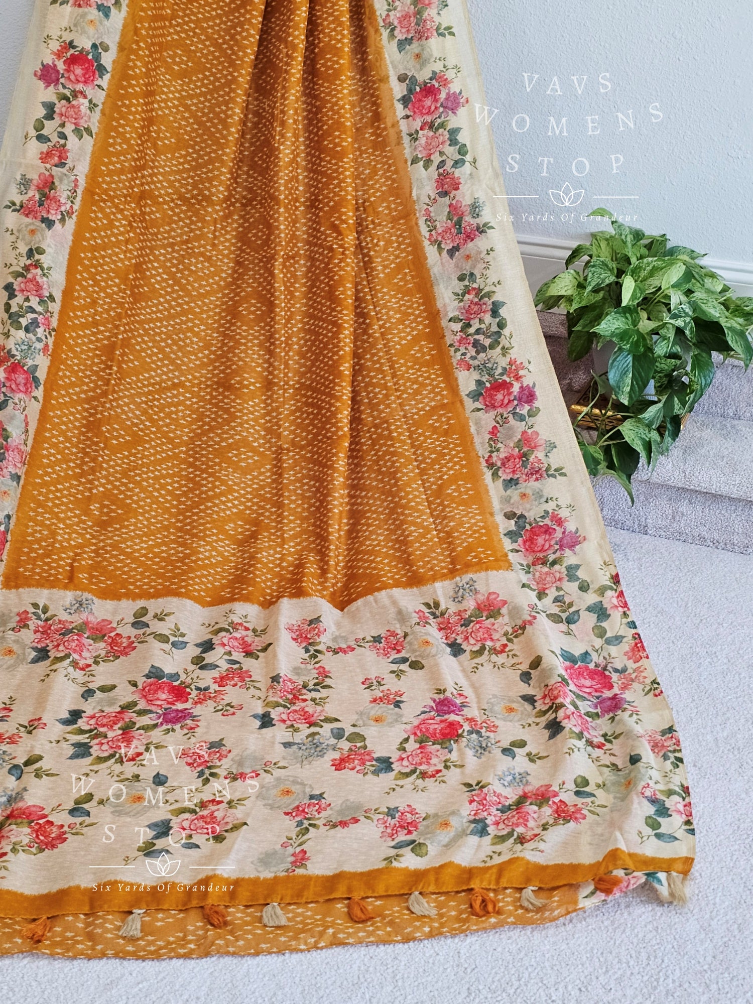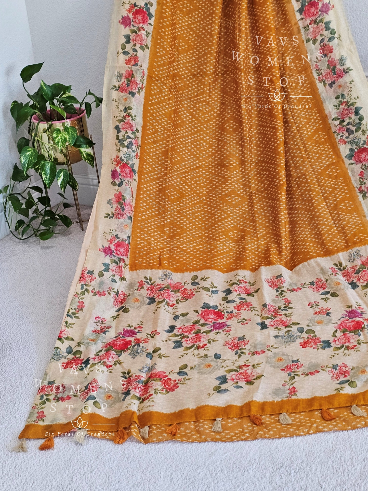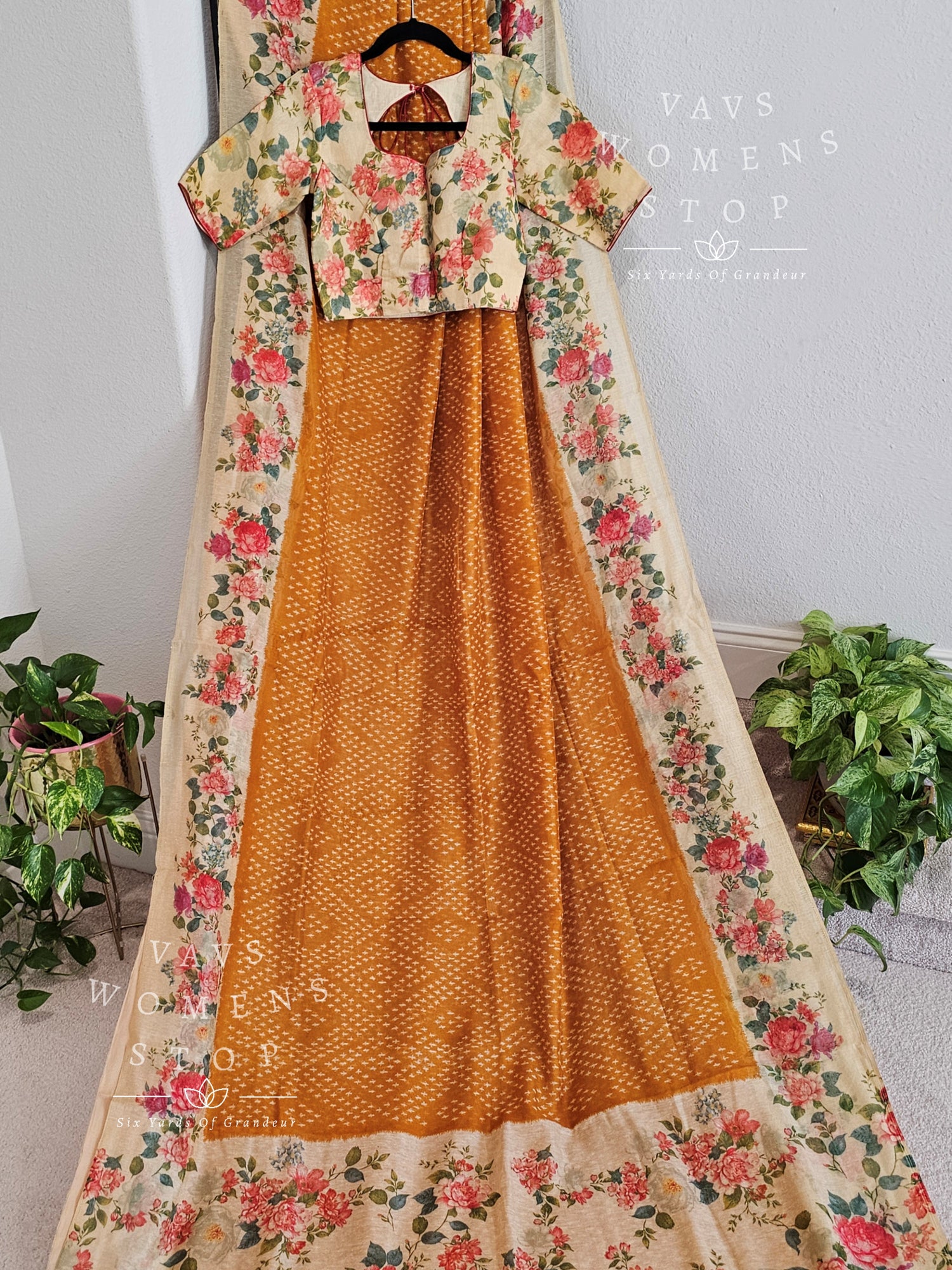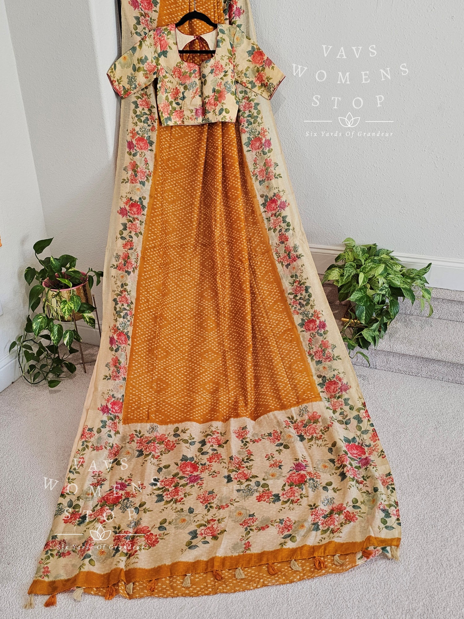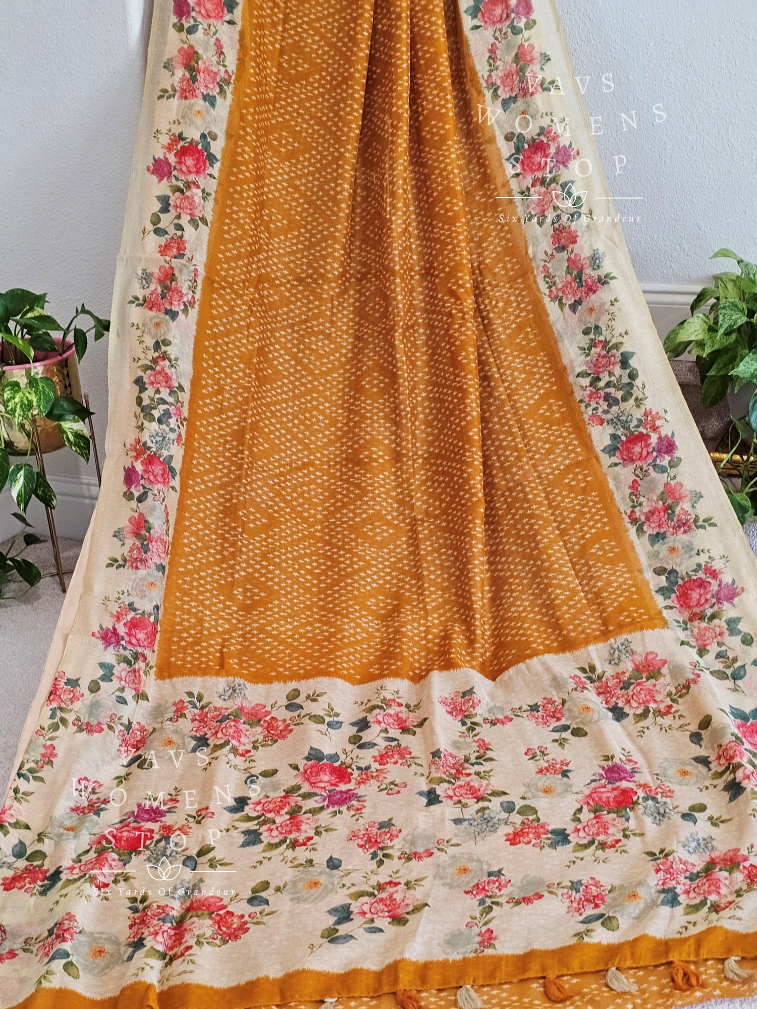 Fusion of floral and bhandini prints on linen cotton saree - blouse
