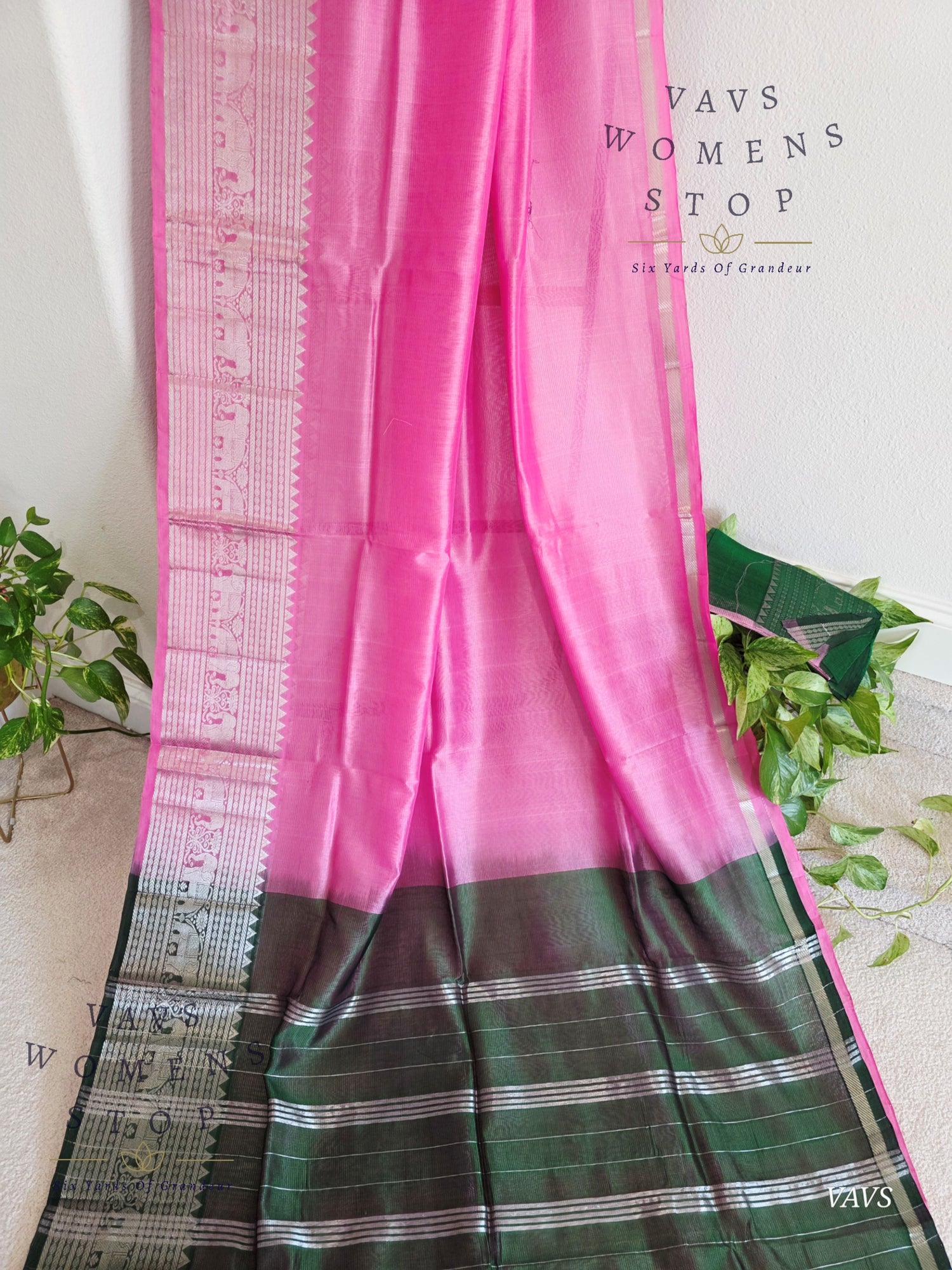 Step into elegance with our Mangalagiri Pattu Silk Cotton Saree, featuring a stunning Kanchi-style border that adds a regal touch to its simple yet graceful look.