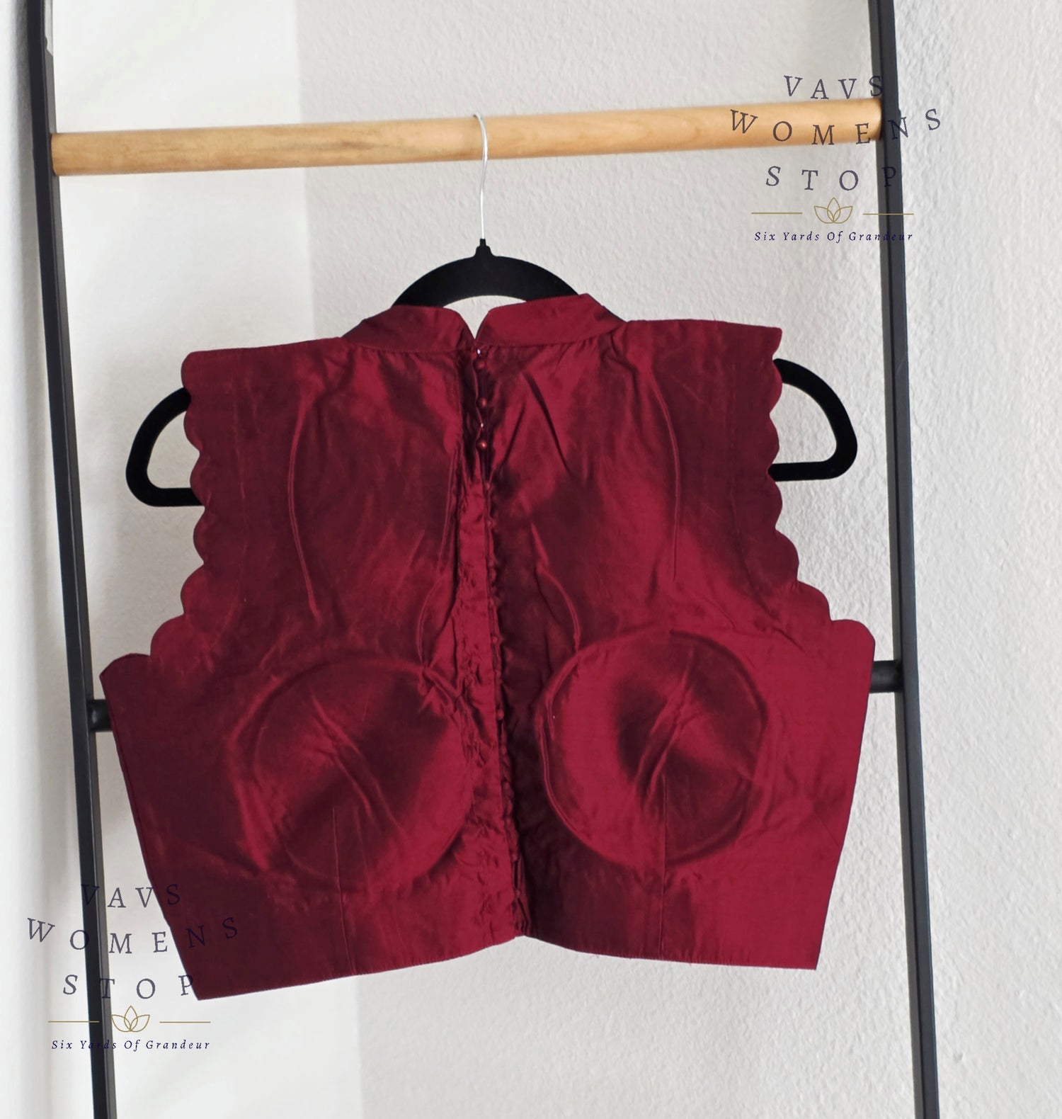 Maroon Shade Jasmin Silk Sleeveless Stitched Blouse