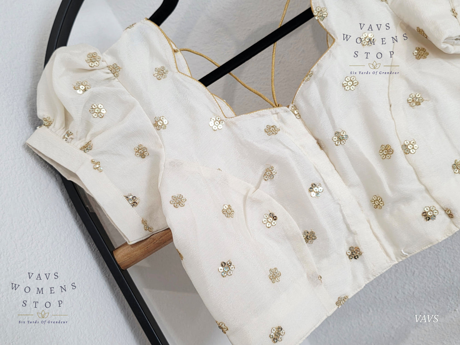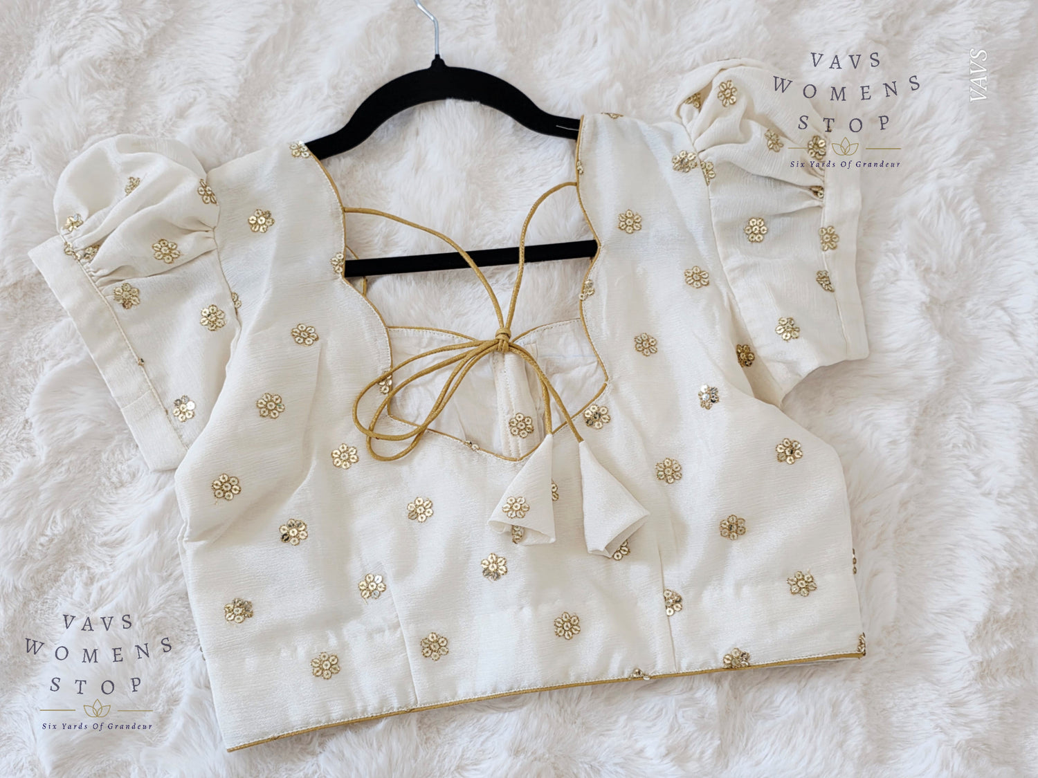 The blouse is stitched in size 3 6and extends up to 42, with alterations available to smaller sizes on request, ensuring a custom fit. Perfect for weddings, festive wear, and special occasions.