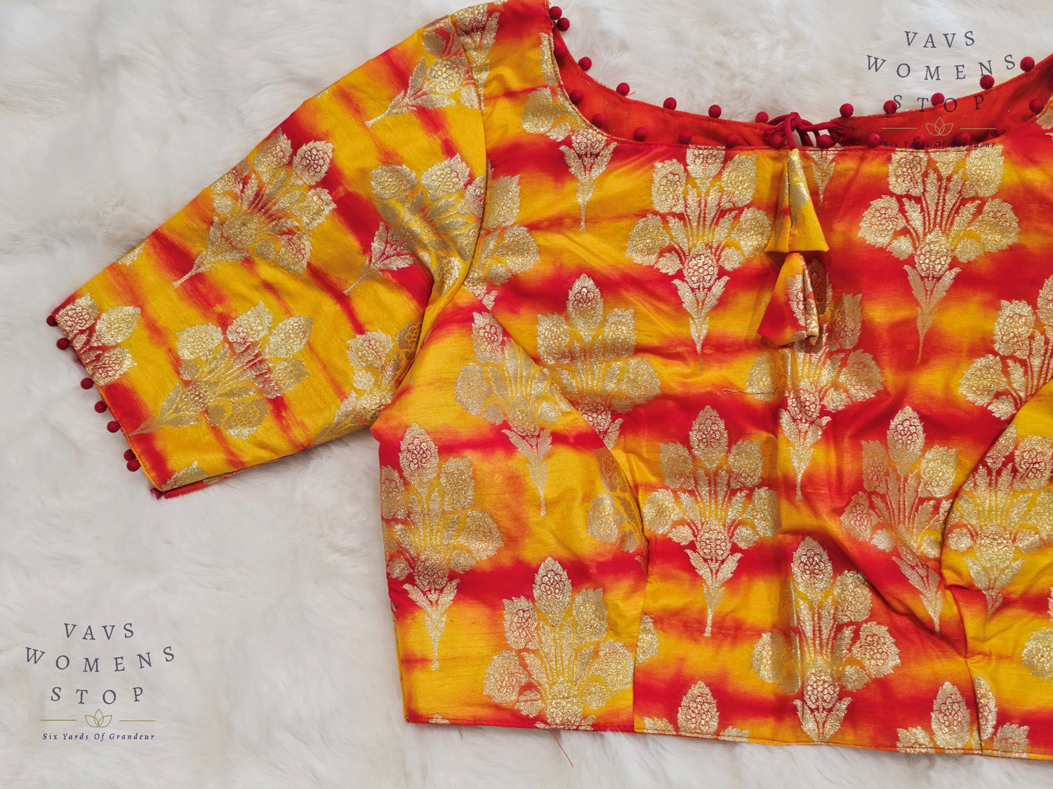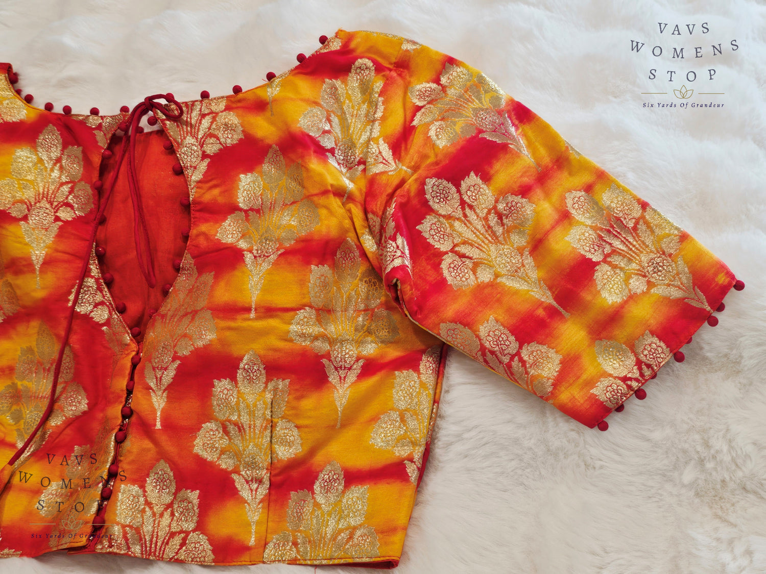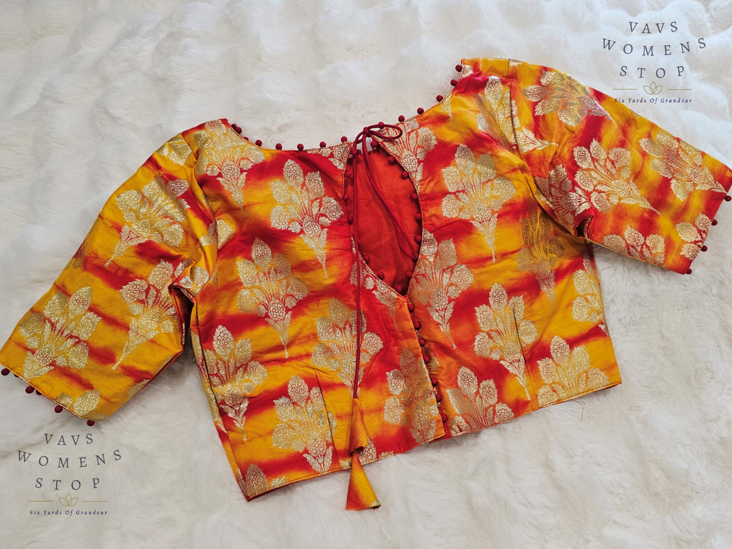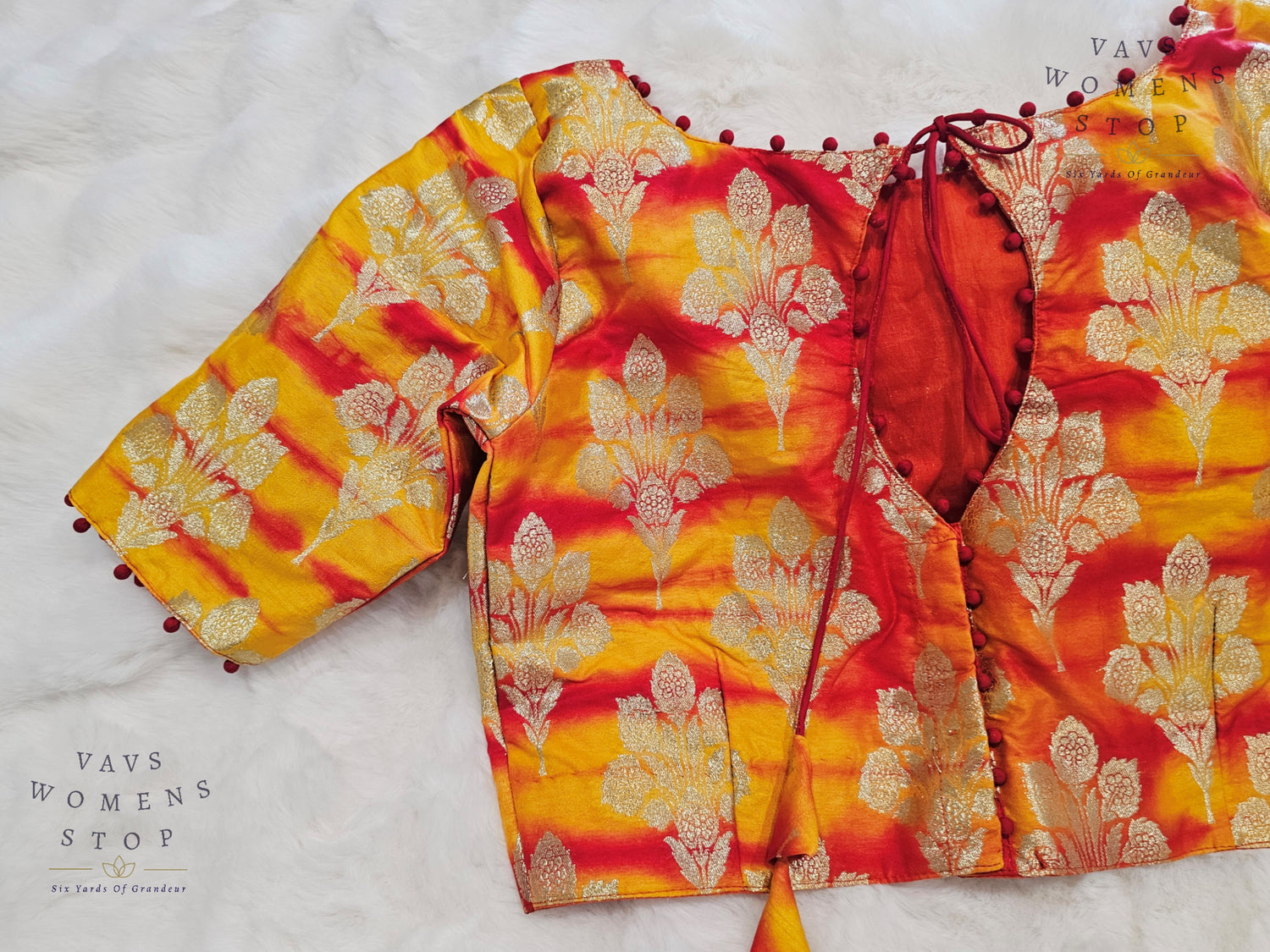 Yellow Orange Shades Shibori Benarasi Silk Blouse