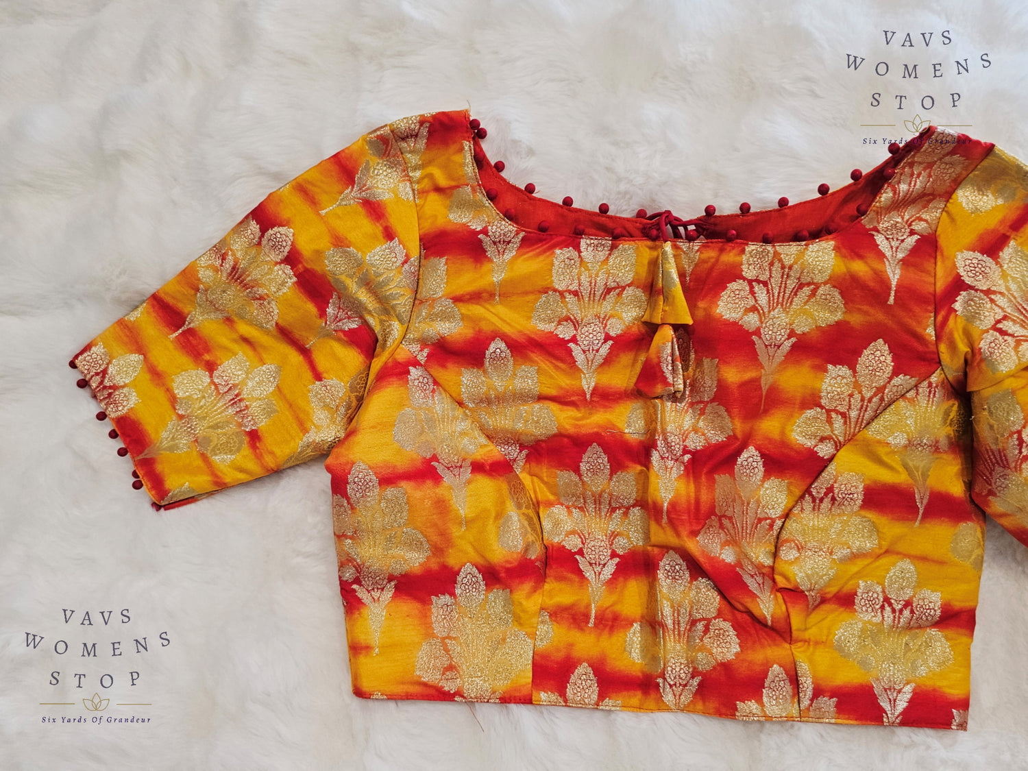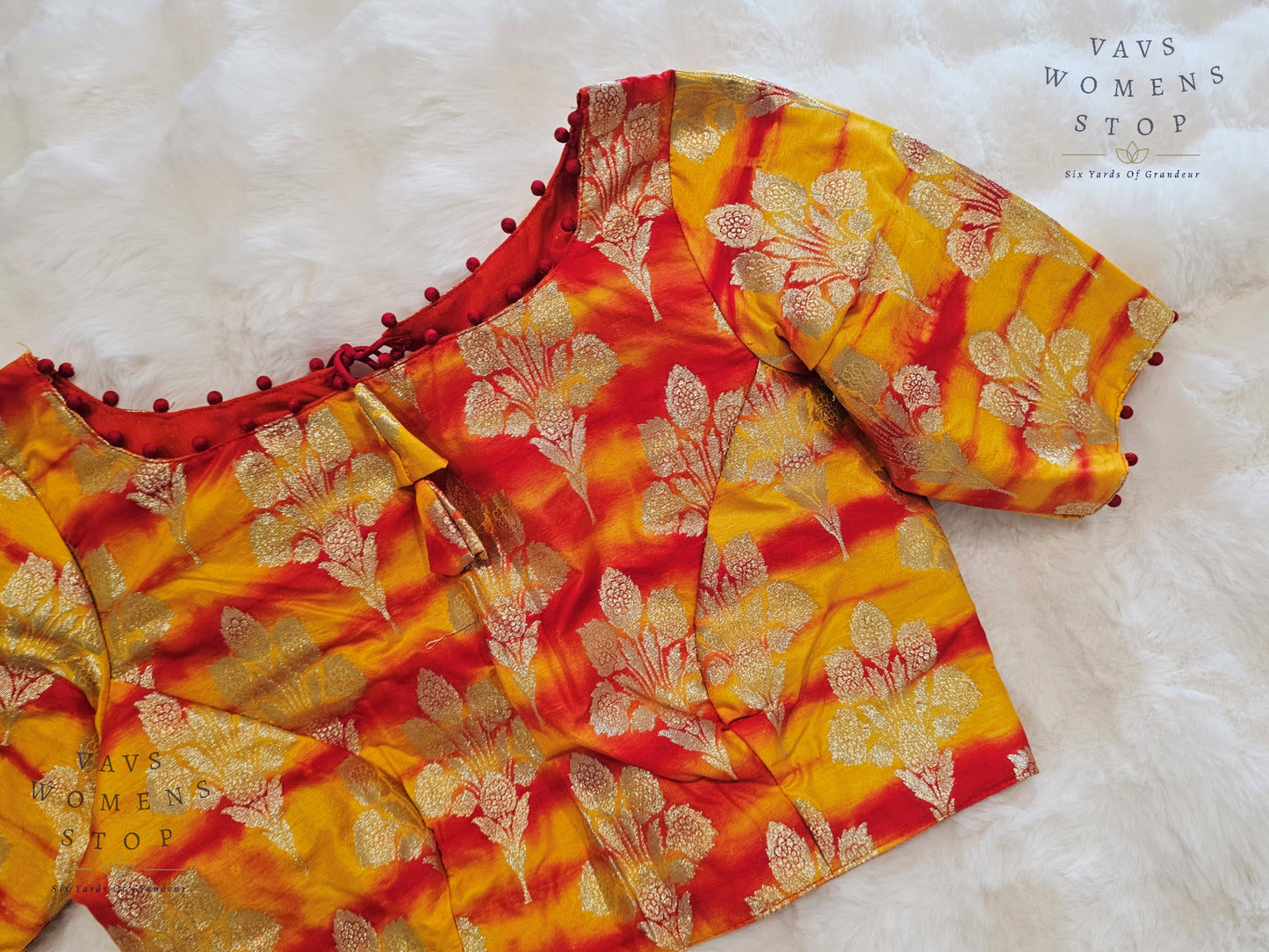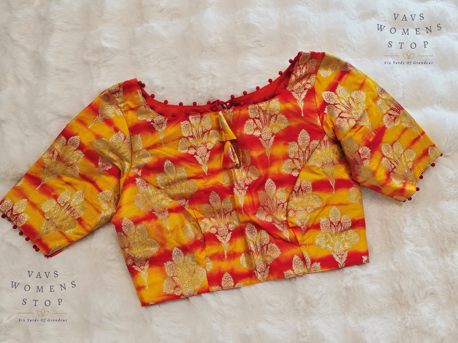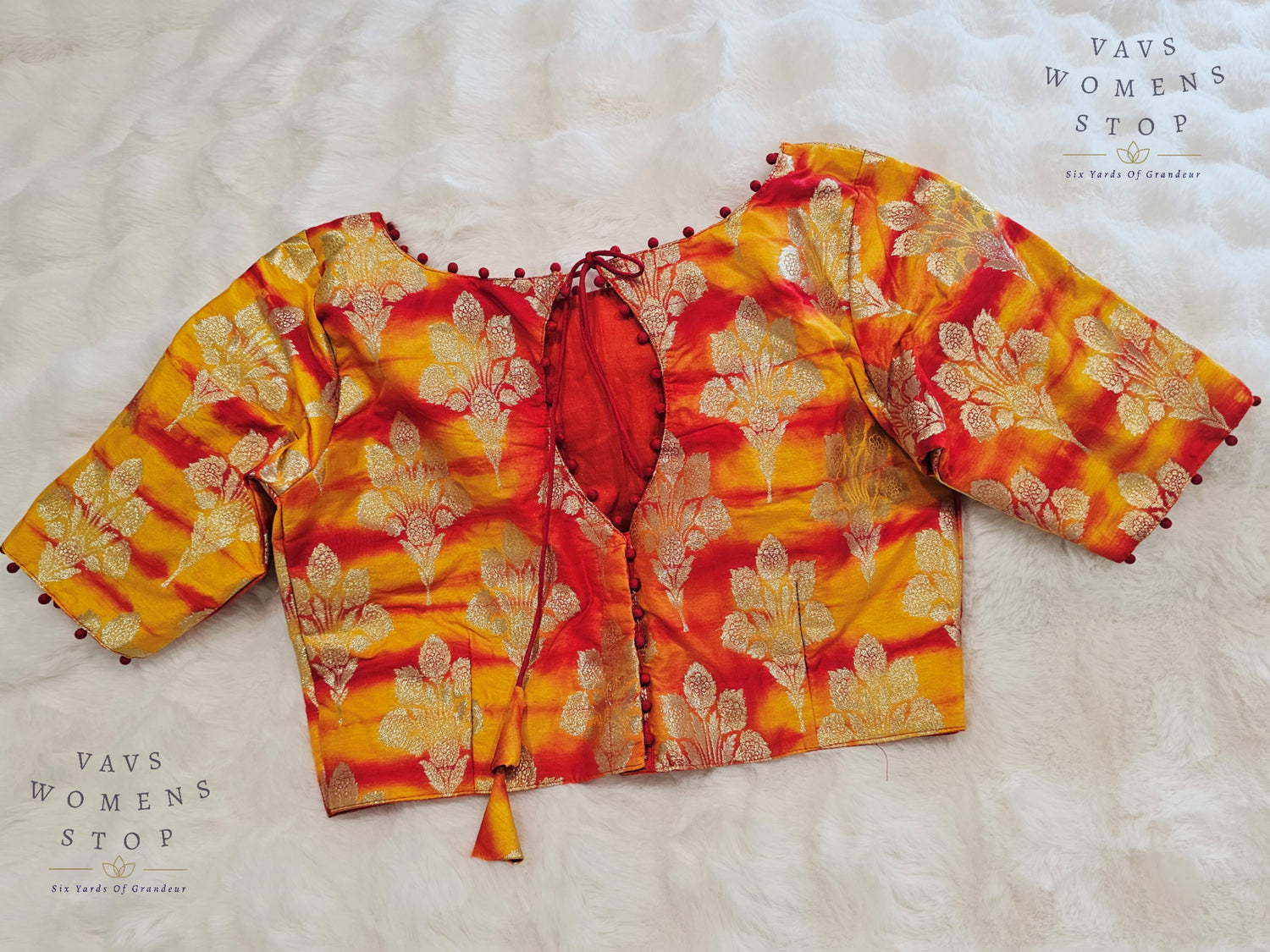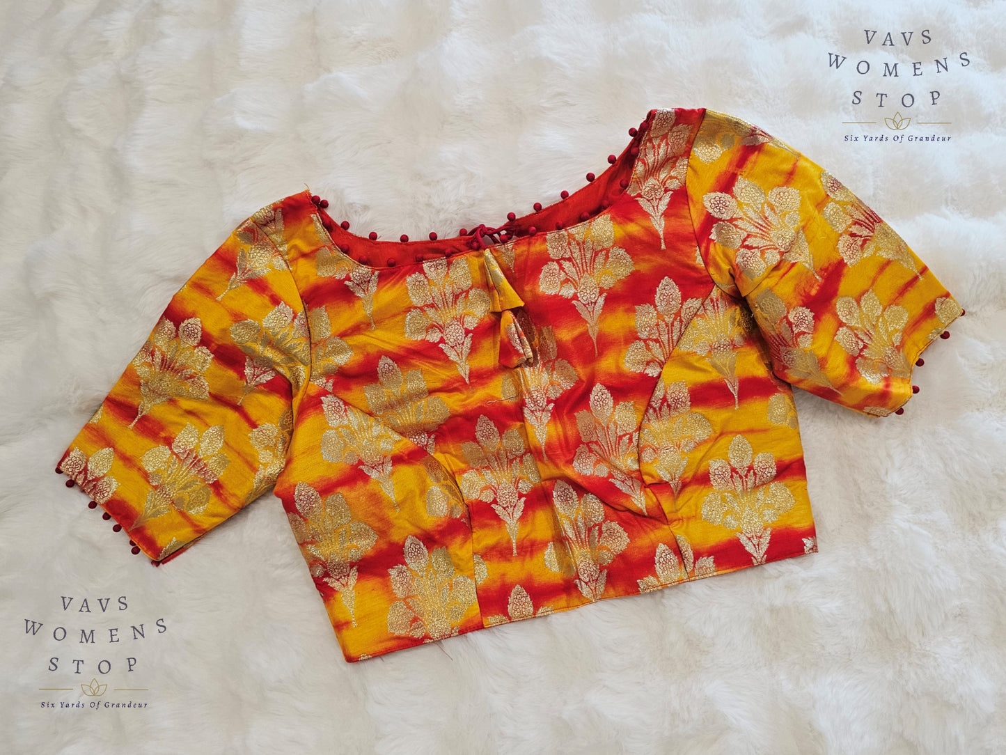 Yellow Orange Shades Shibori Benarasi Silk Blouse