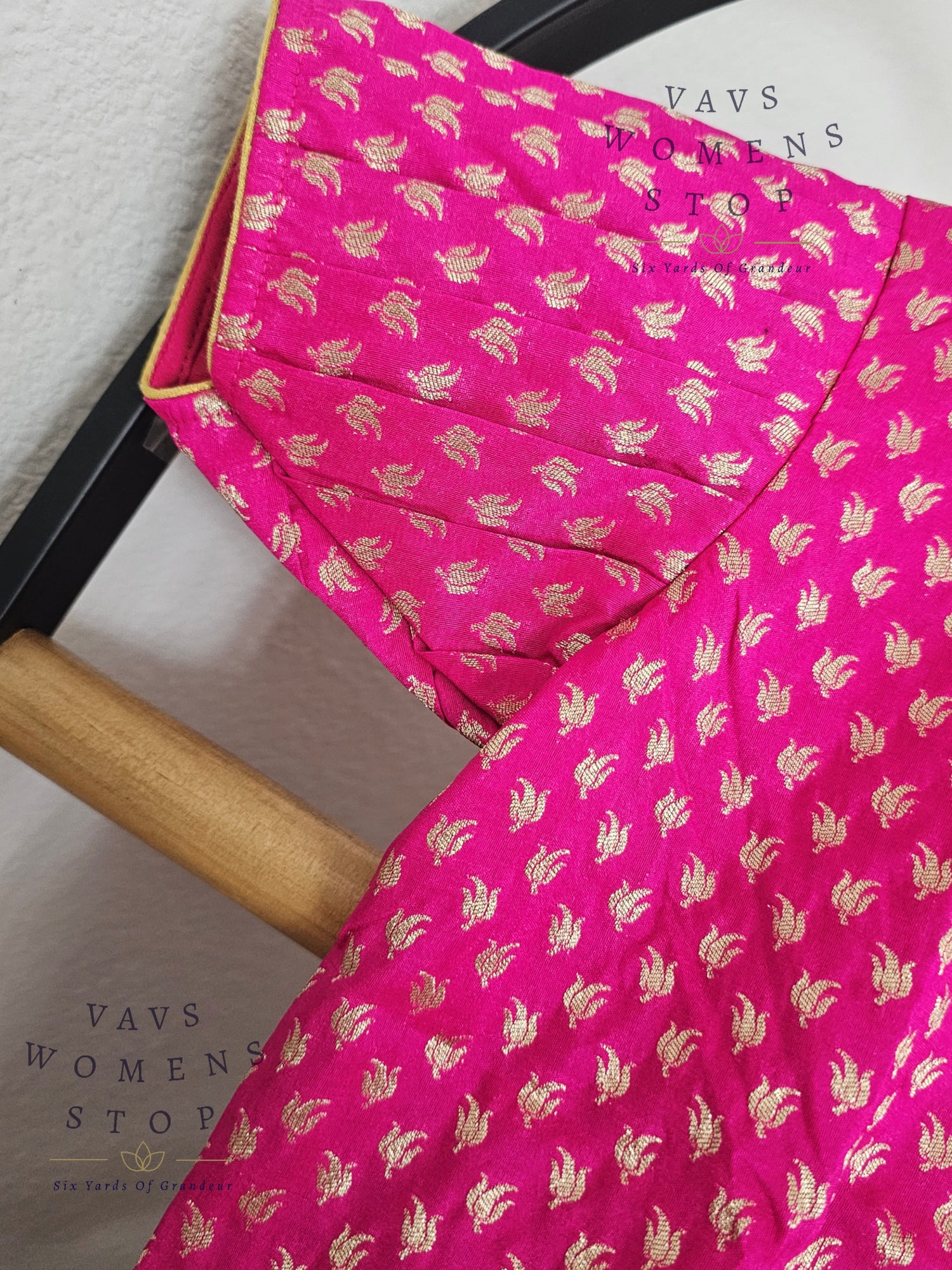 Our Satin Benarasi Kids Pattu Pavadai Langa Blouse Suits are ready to ship from Prosper, Texas, USA. We take pride in our quality and craftsmanship, and we are confident that your child will look adorable in this outfit. If you need specific measurements before making a purchase, please contact us on WhatsApp at 2066511362. Don't miss out on this beautiful and traditional piece for your little one's wardrobe.