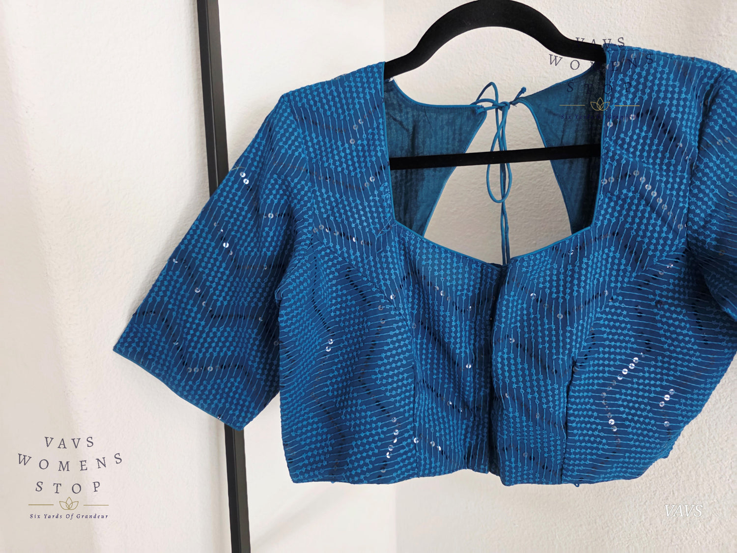 Fabric: Peacock Blue Shade Sequins Georgette Blouse