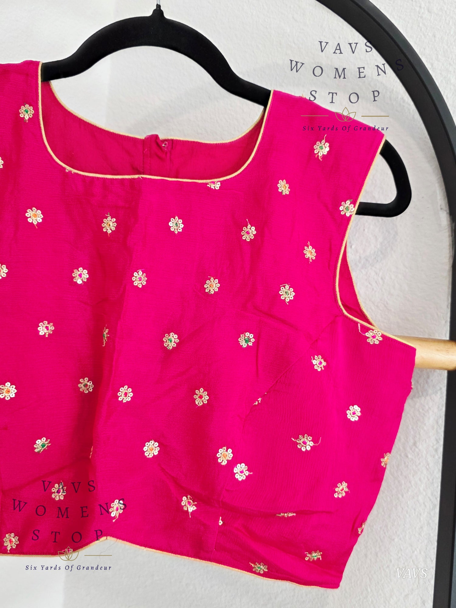 Fabric : Pink Chinon Chiffon Sleeveless Stitched Blouse