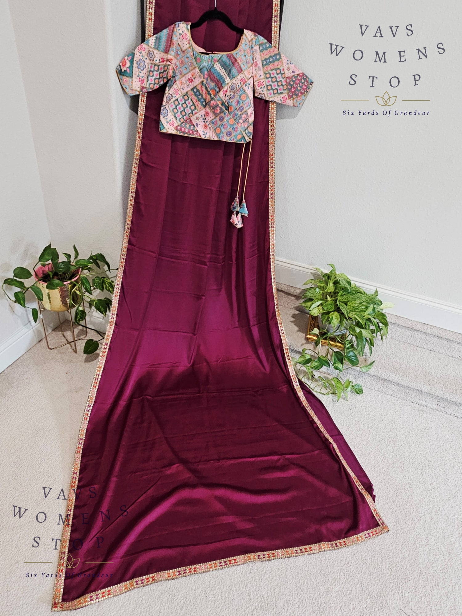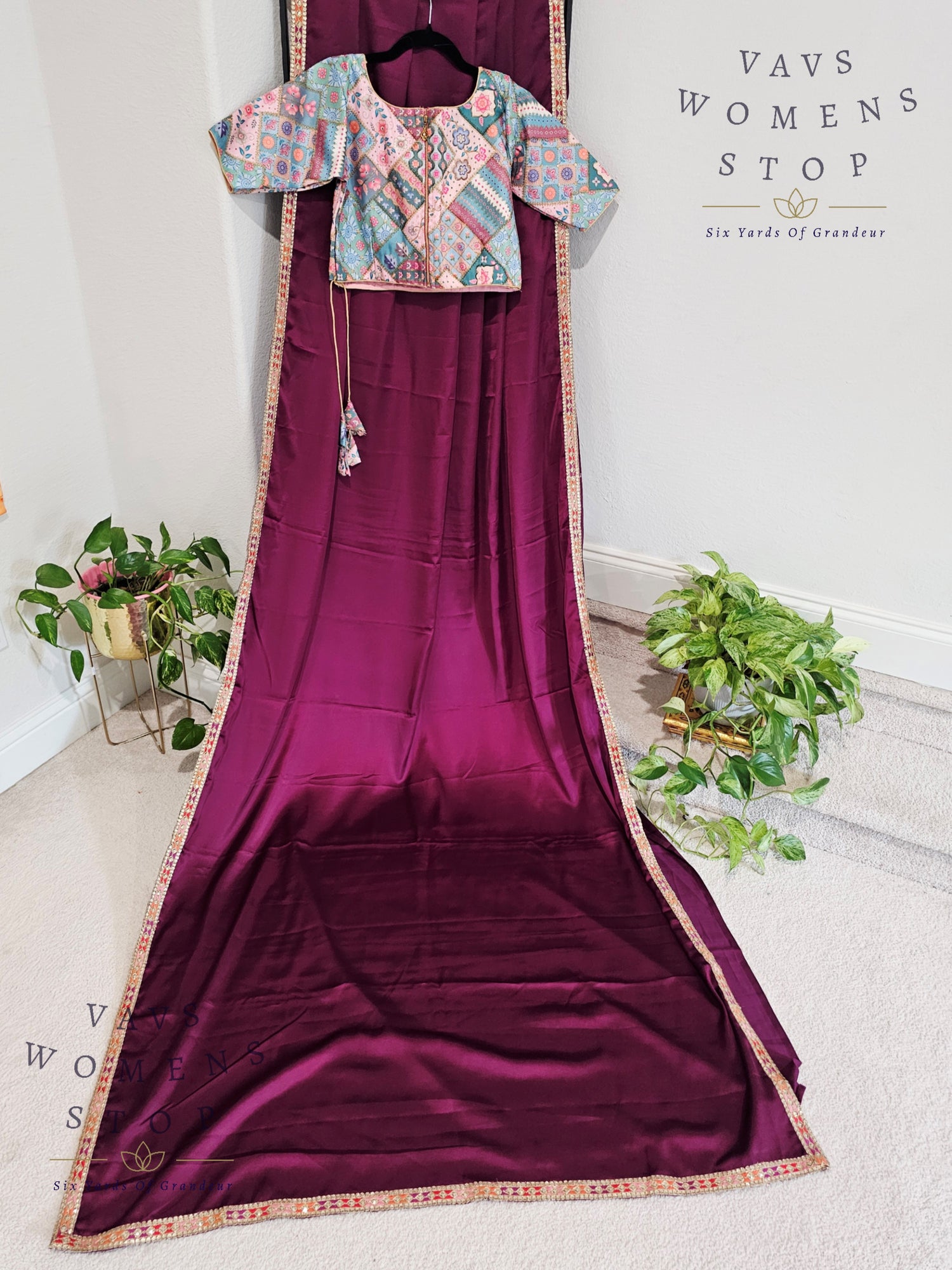 Plain Viscose Modal Silk Saree Paired - Pure Tussar Rawsilk Embroidery Blouse