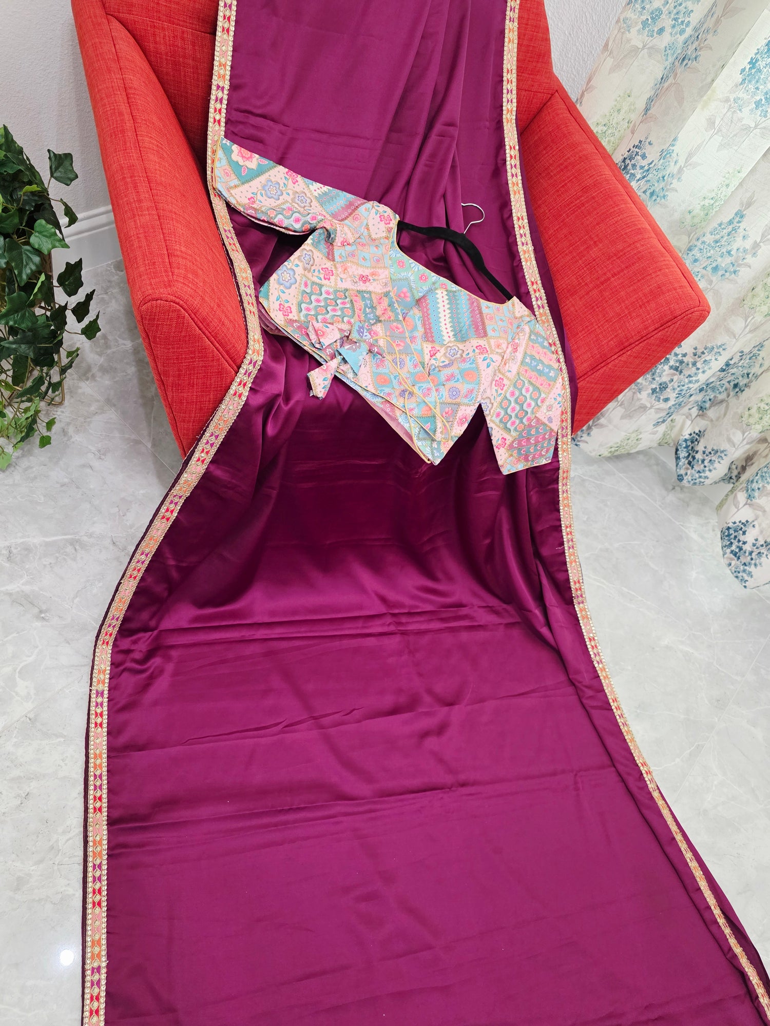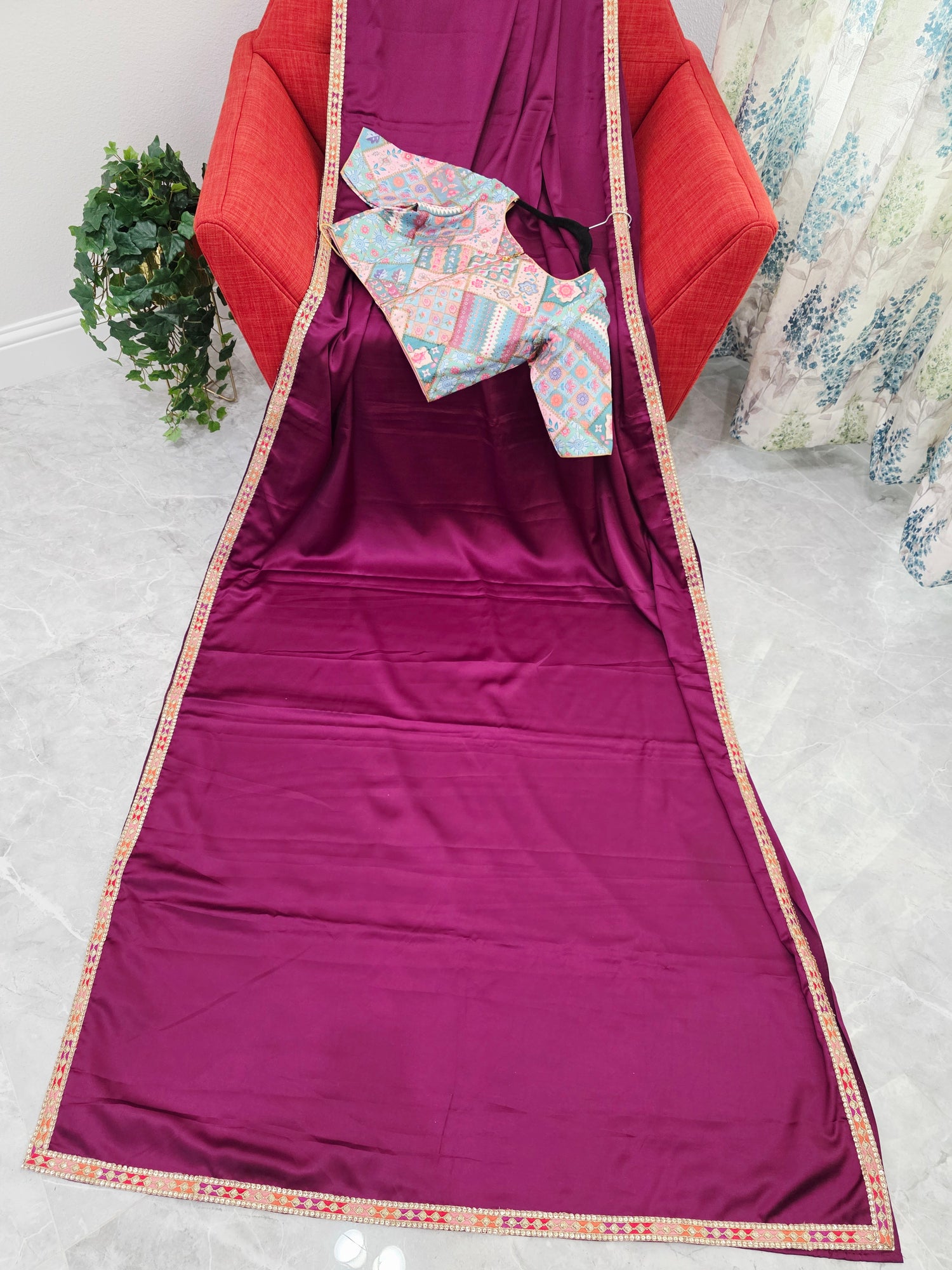 Drape yourself in refined elegance with our Royal Mulberry Wine Viscose Modal Silk Saree, designed in a rich jewel-toned magenta hue that radiates luxury. This saree features a delicate lace-attached border that adds subtle festive sophistication, making it perfect for weddings, receptions, poojas, festive gatherings, and evening celebrations.