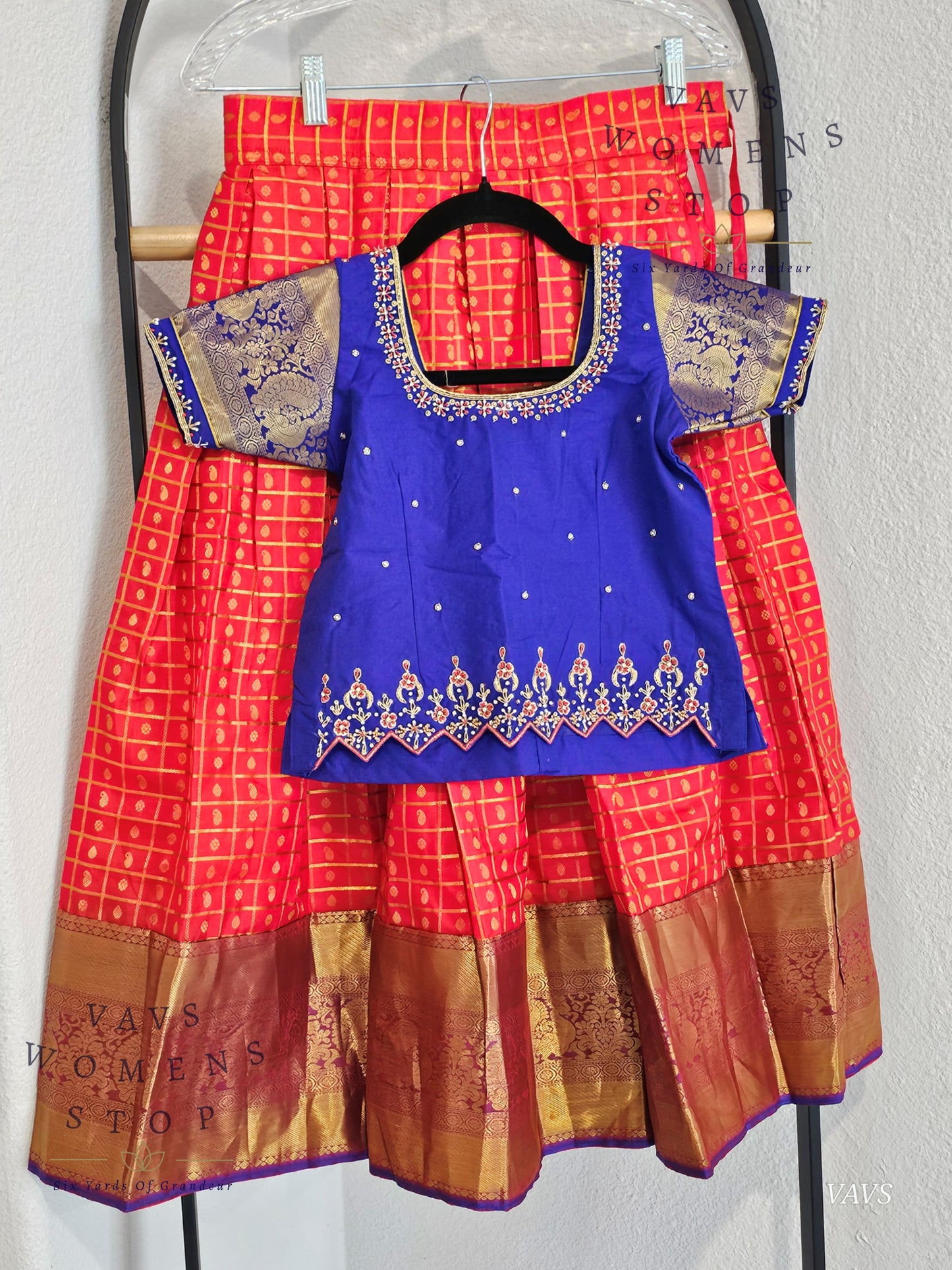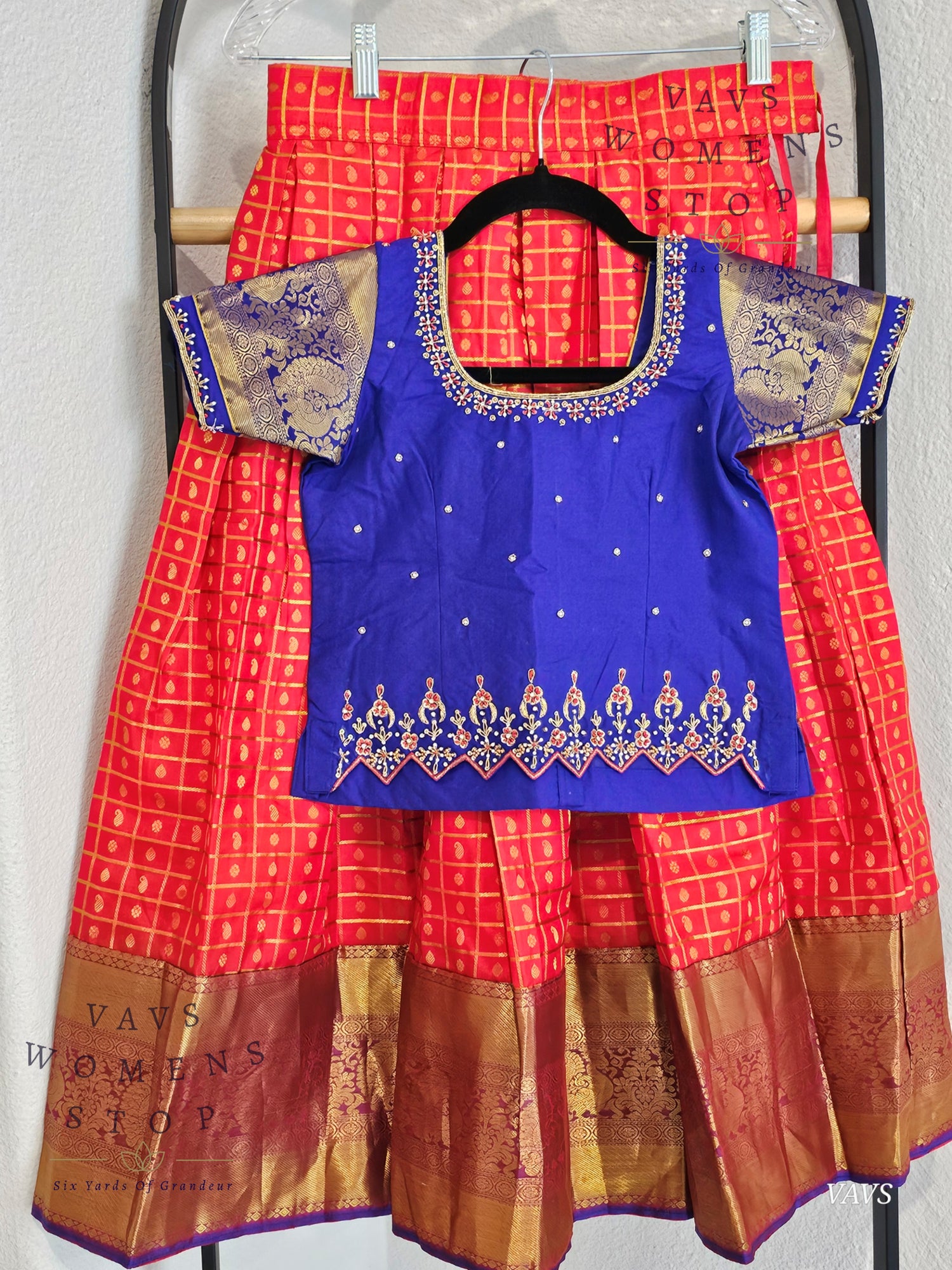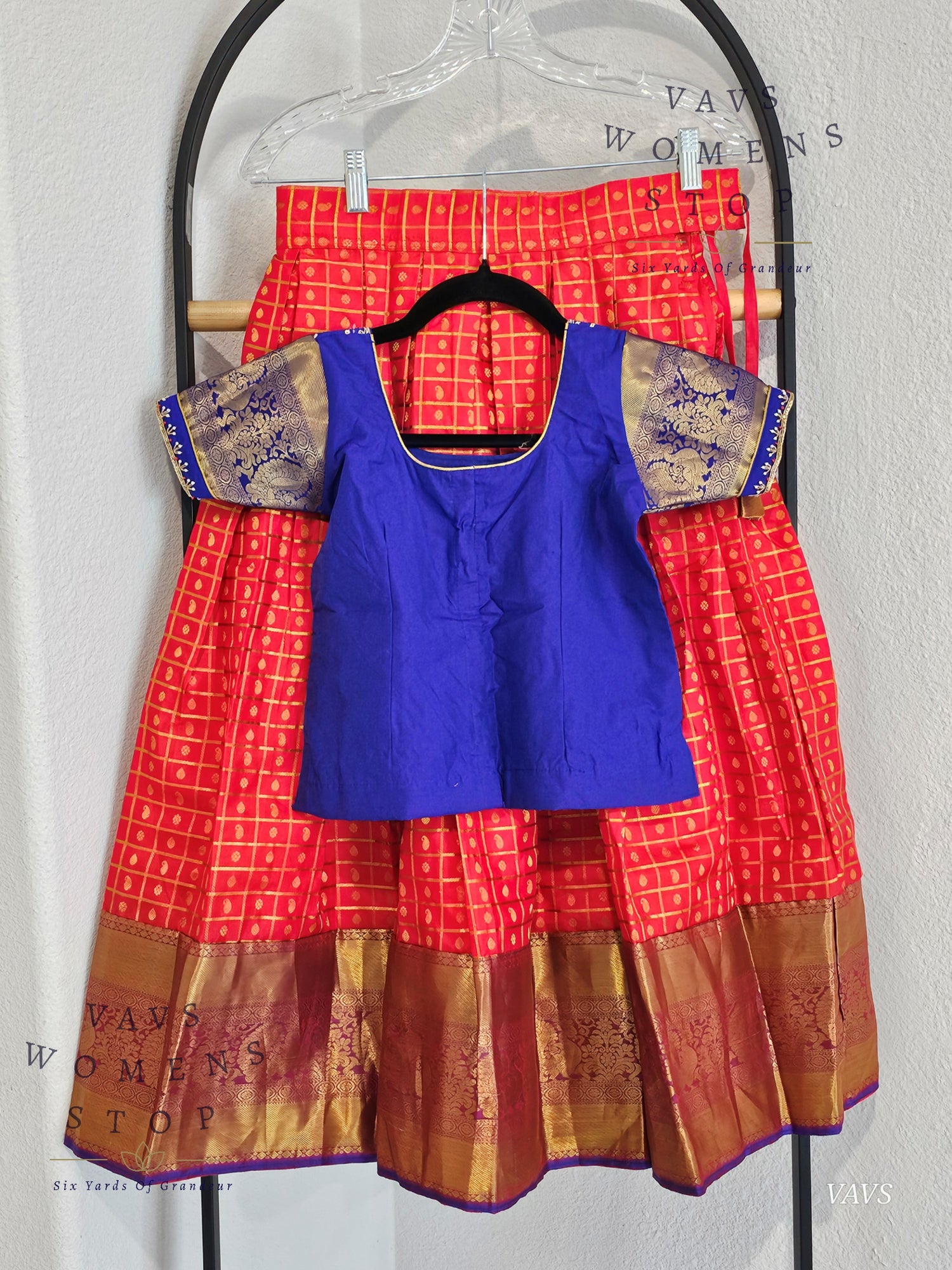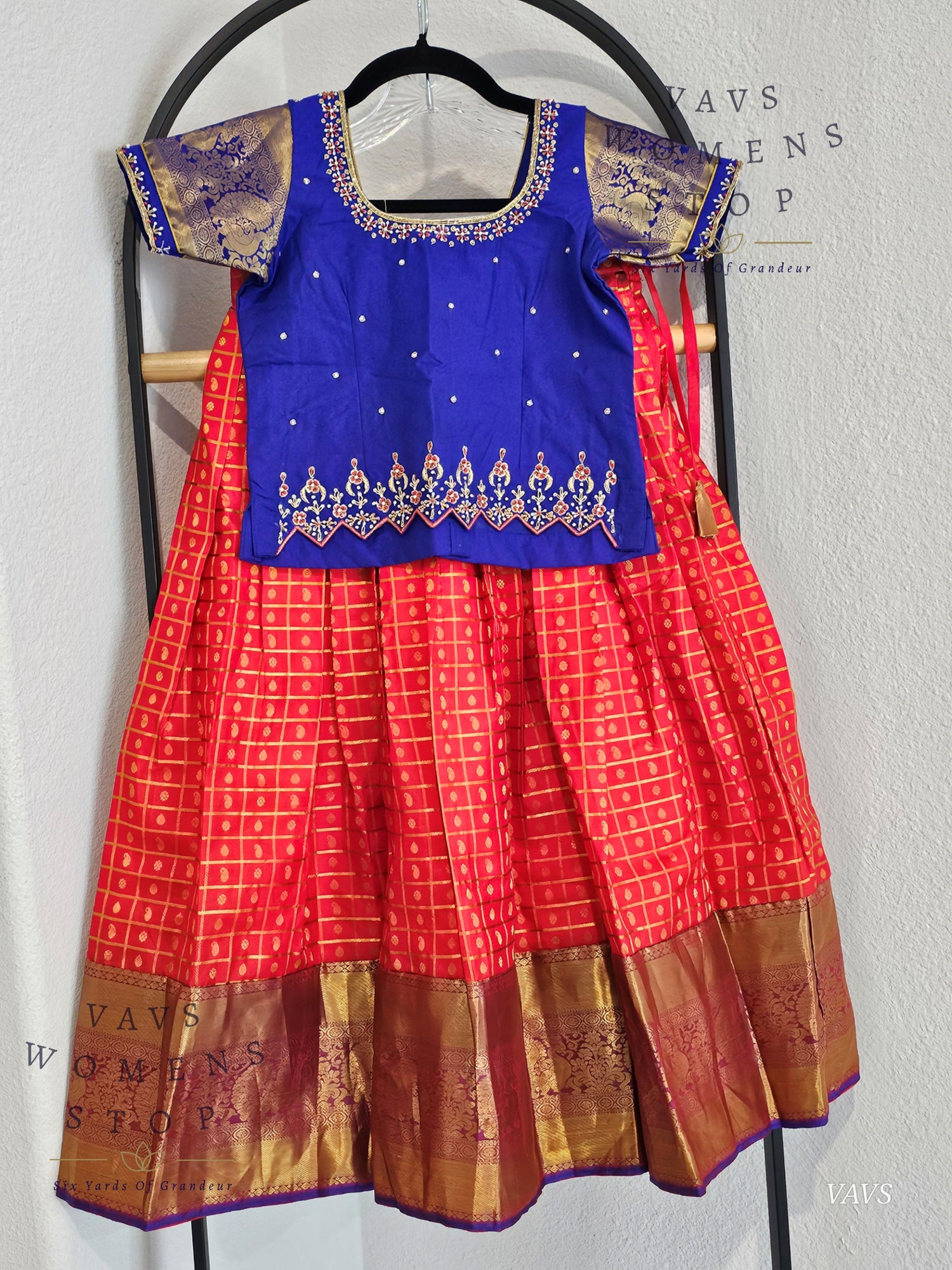 Celebrate heritage in comfort and style with this beautifully tailored Kanchi silk lehenga set – a must-have for your little one’s festive wardrobe.