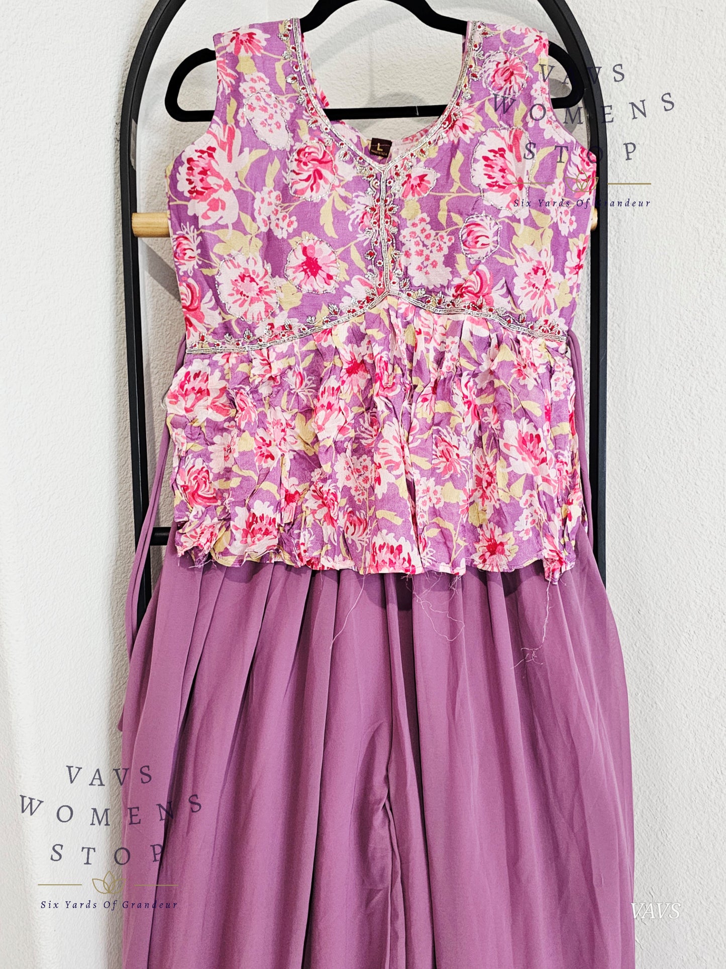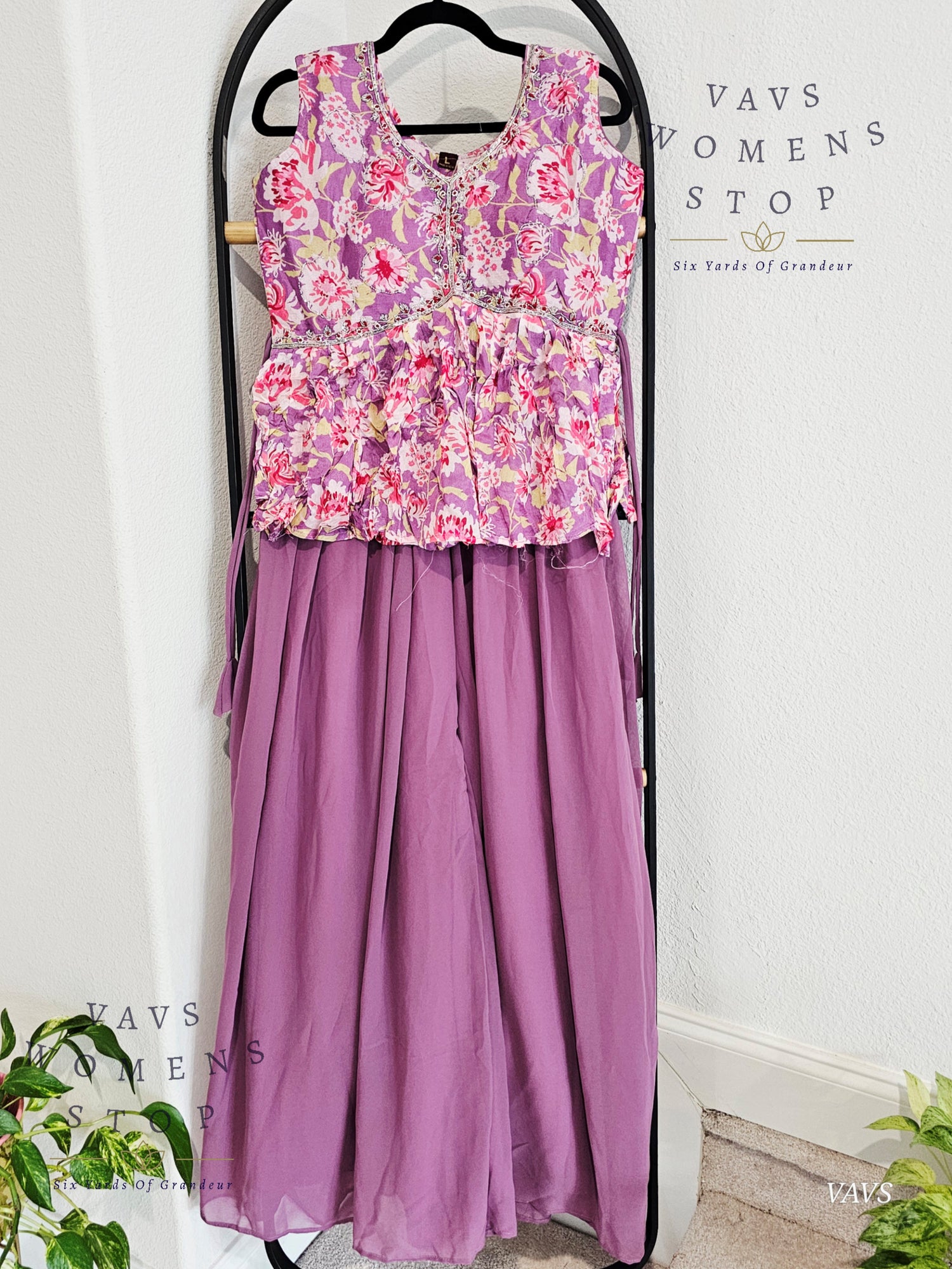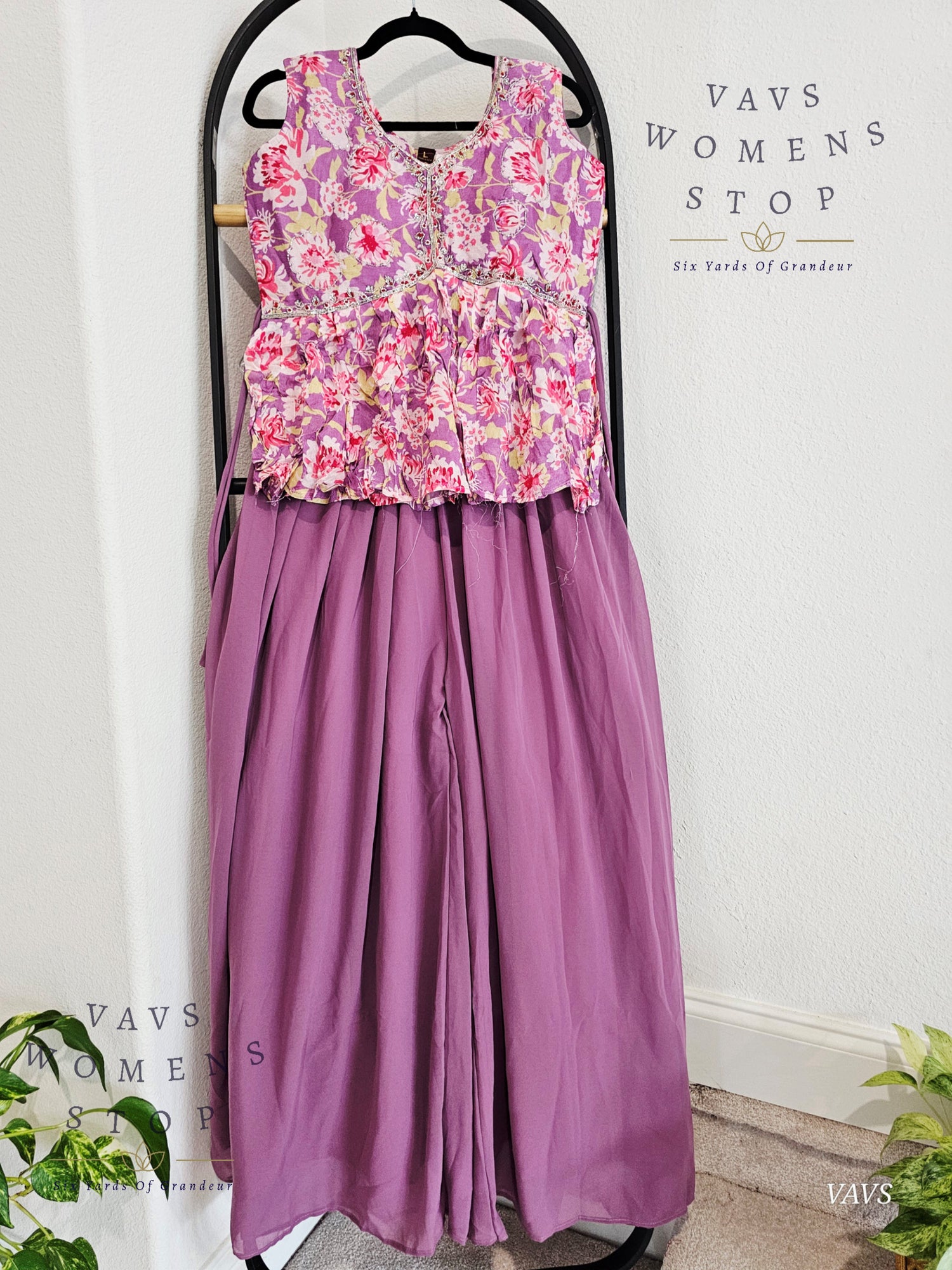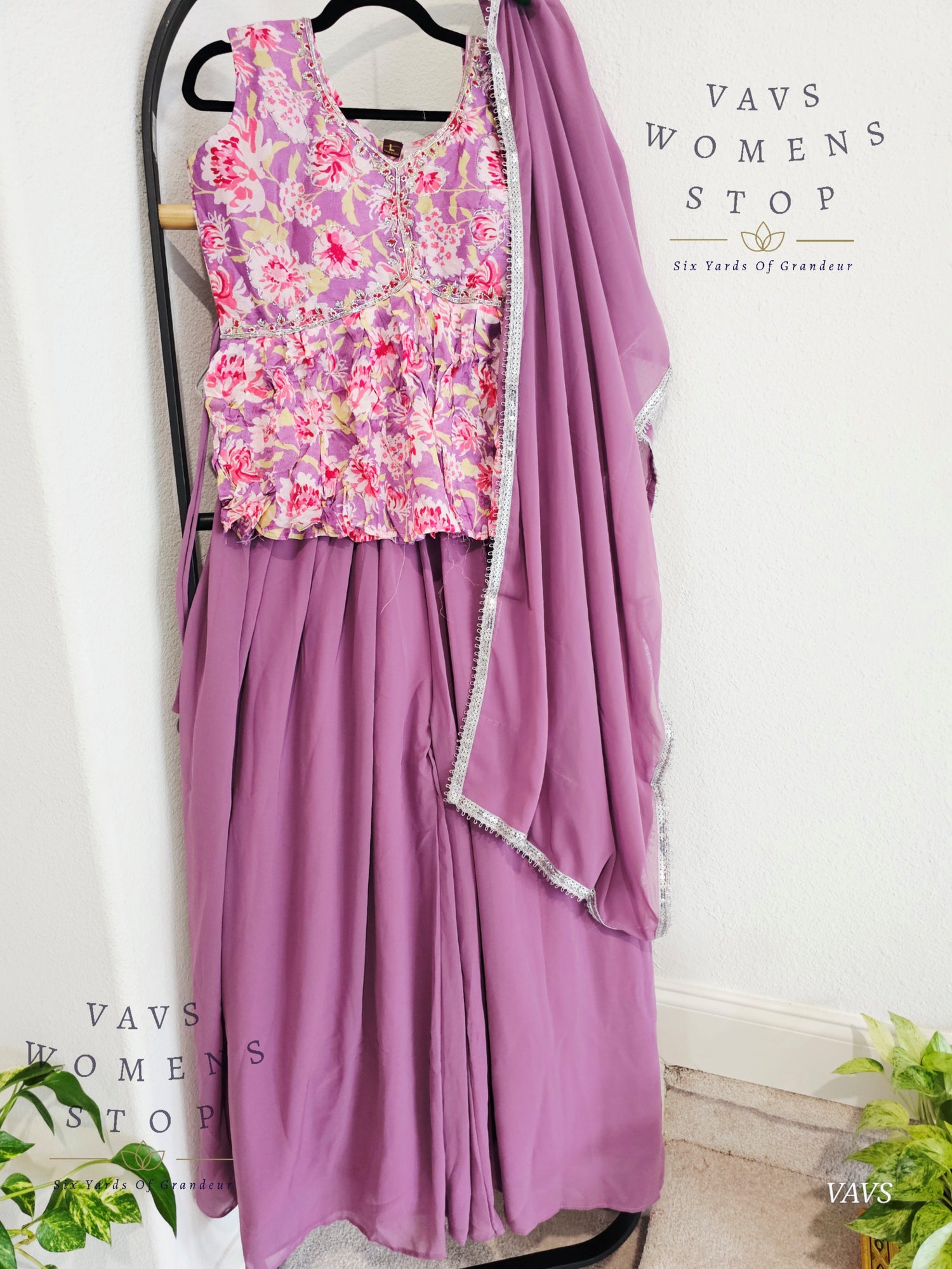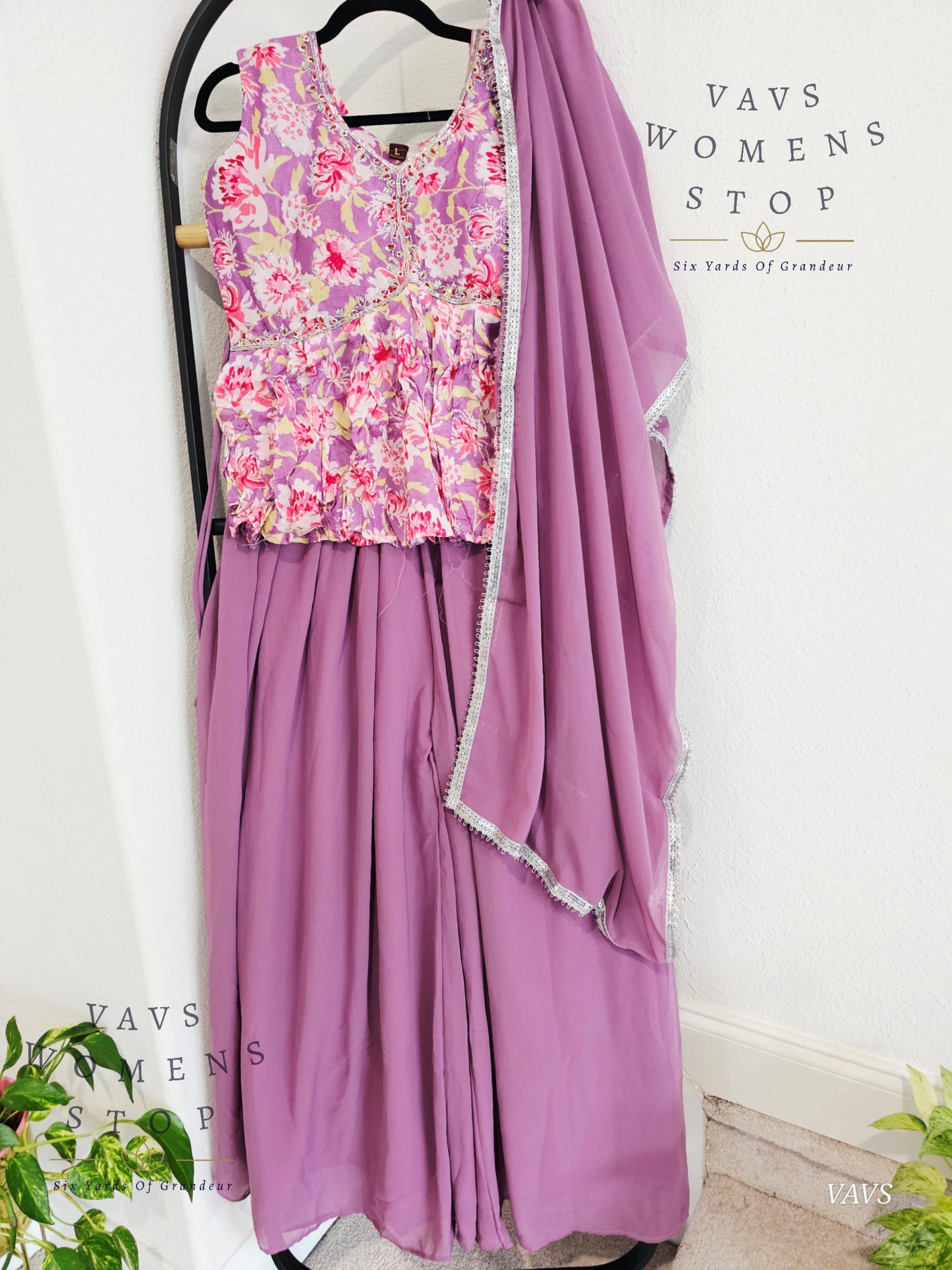 Readymade Partywear 3 Piece Set Croptop Blouse Palazzo Pant Dupatta - L