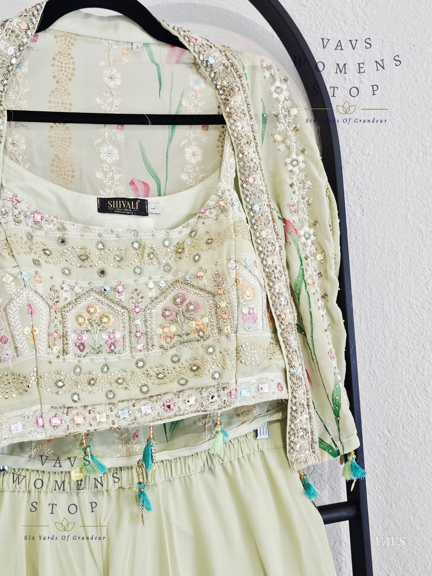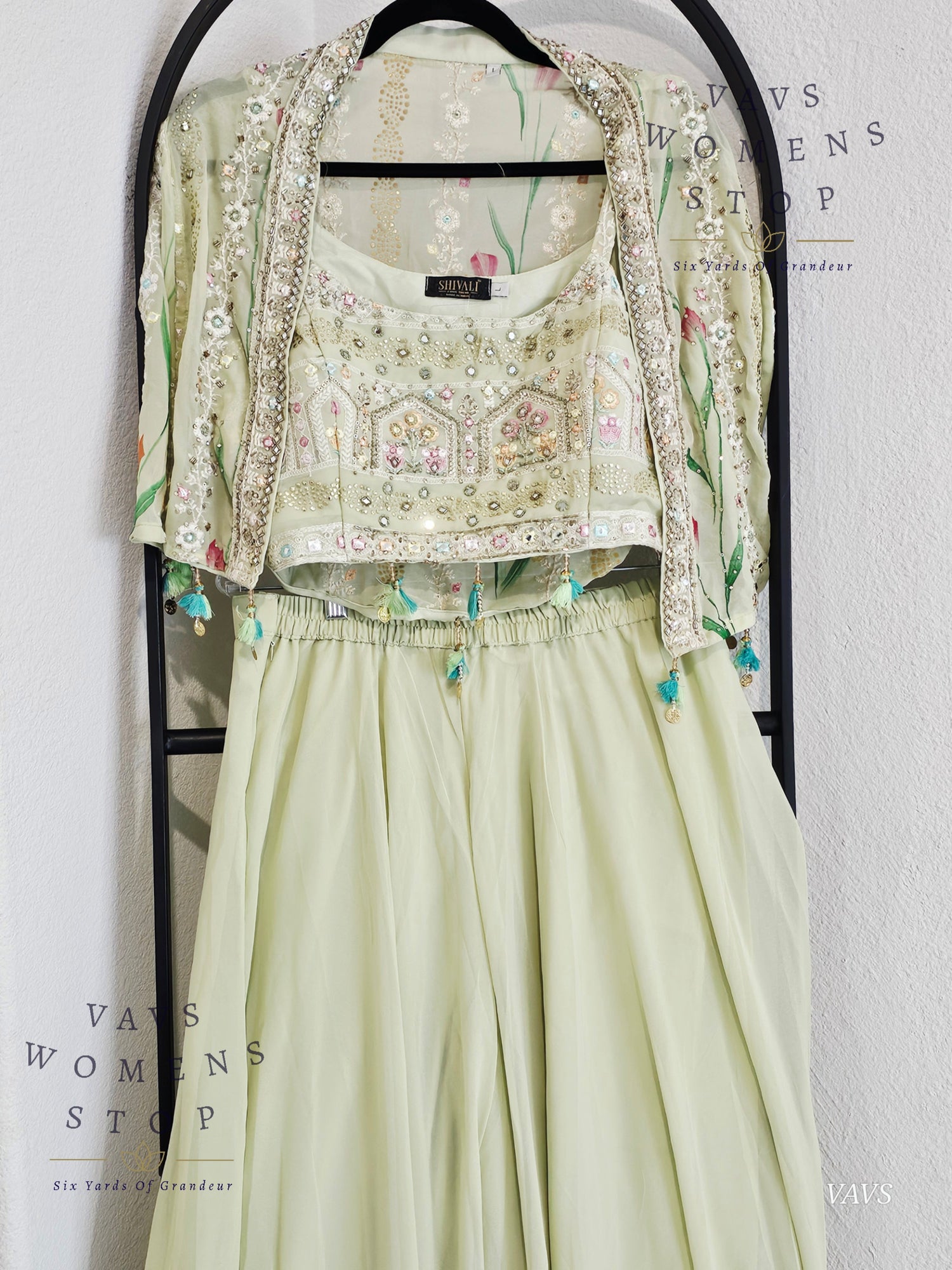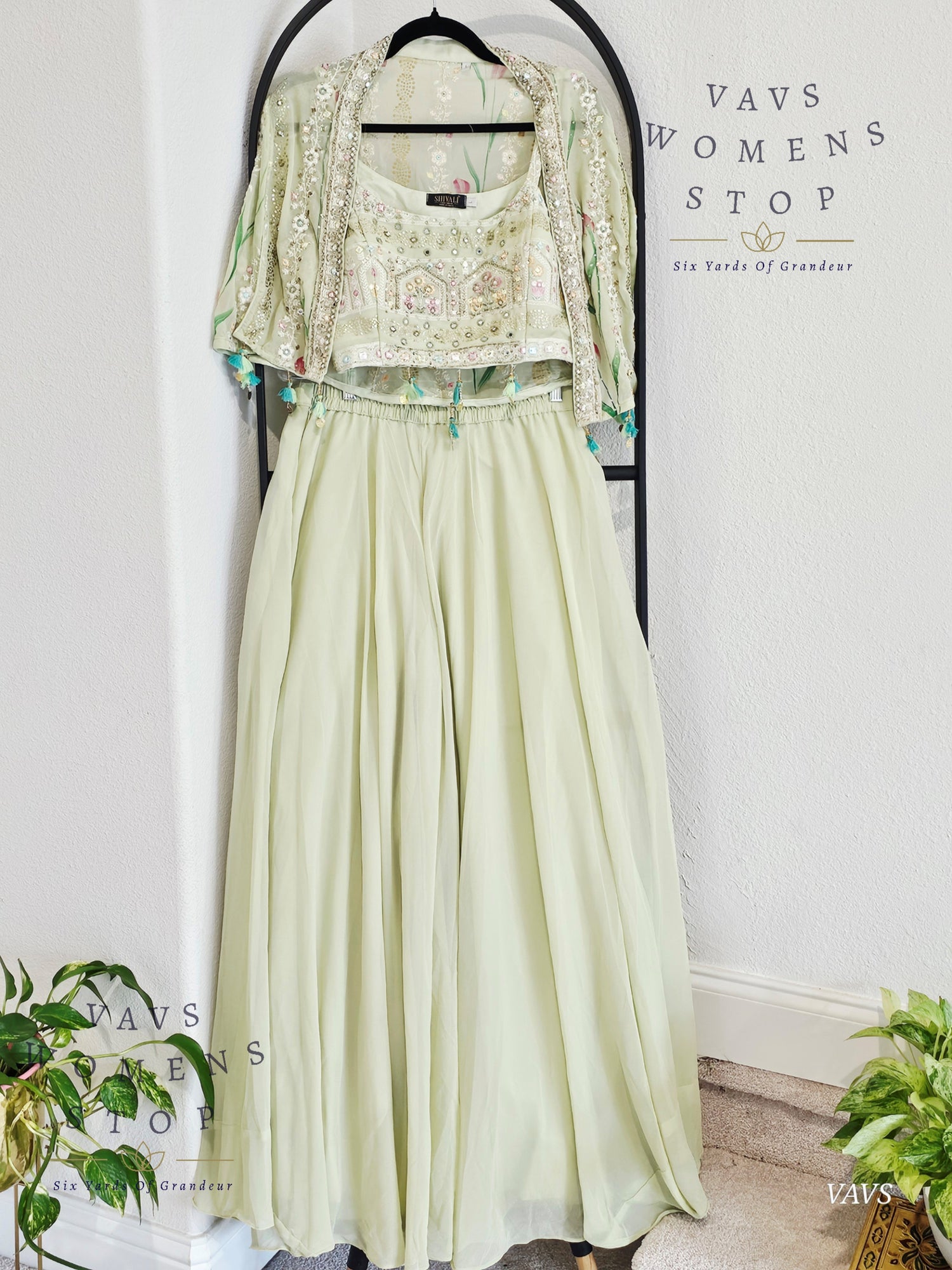 Readymade Partywear 3 Piece Set Overcoat Blouse Palazzo Pant - L