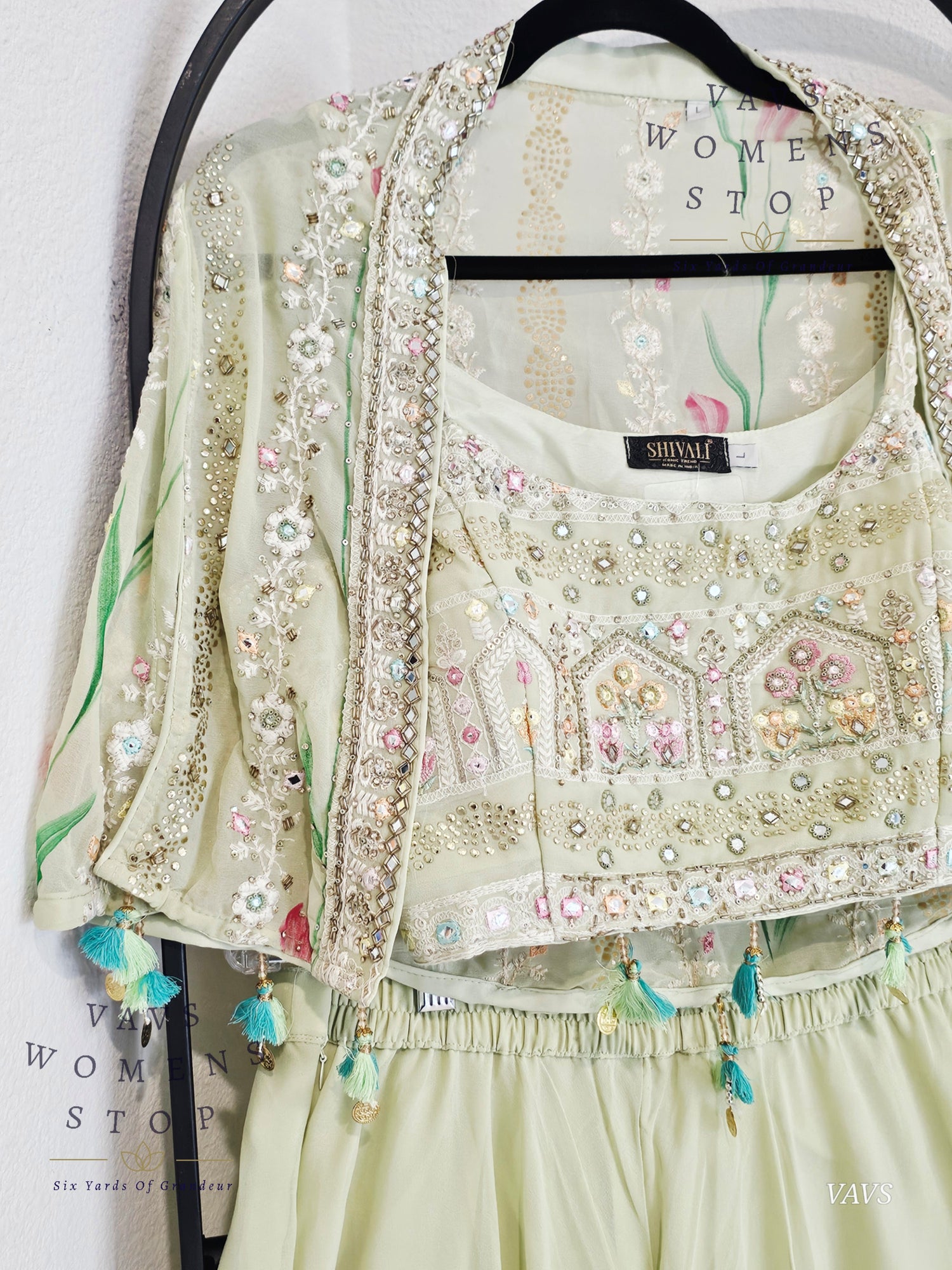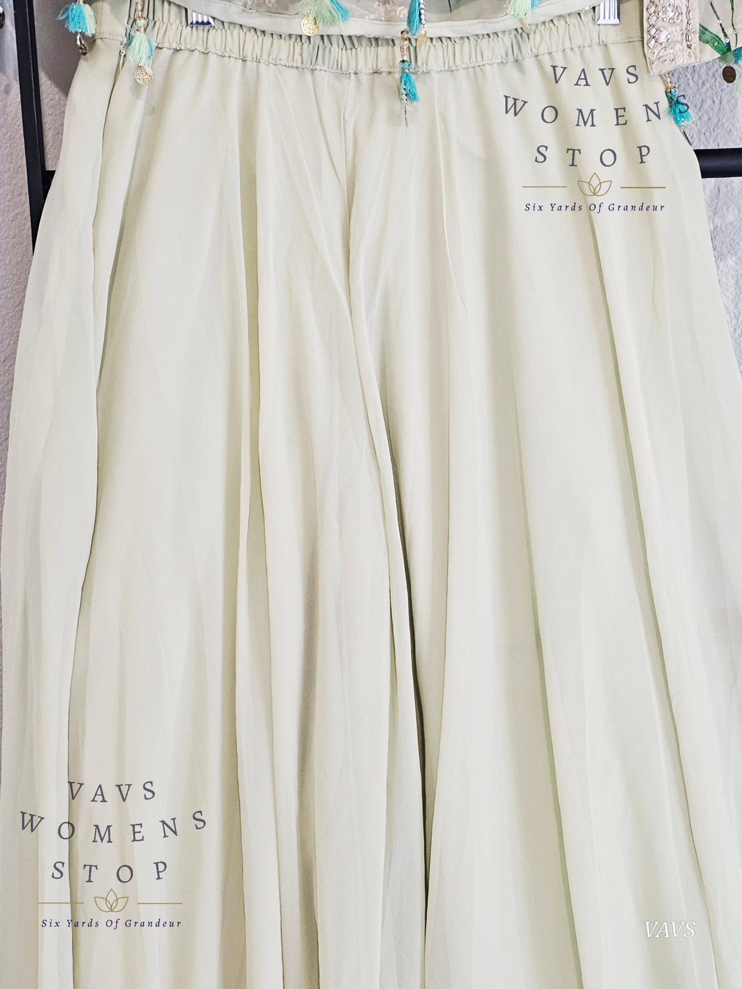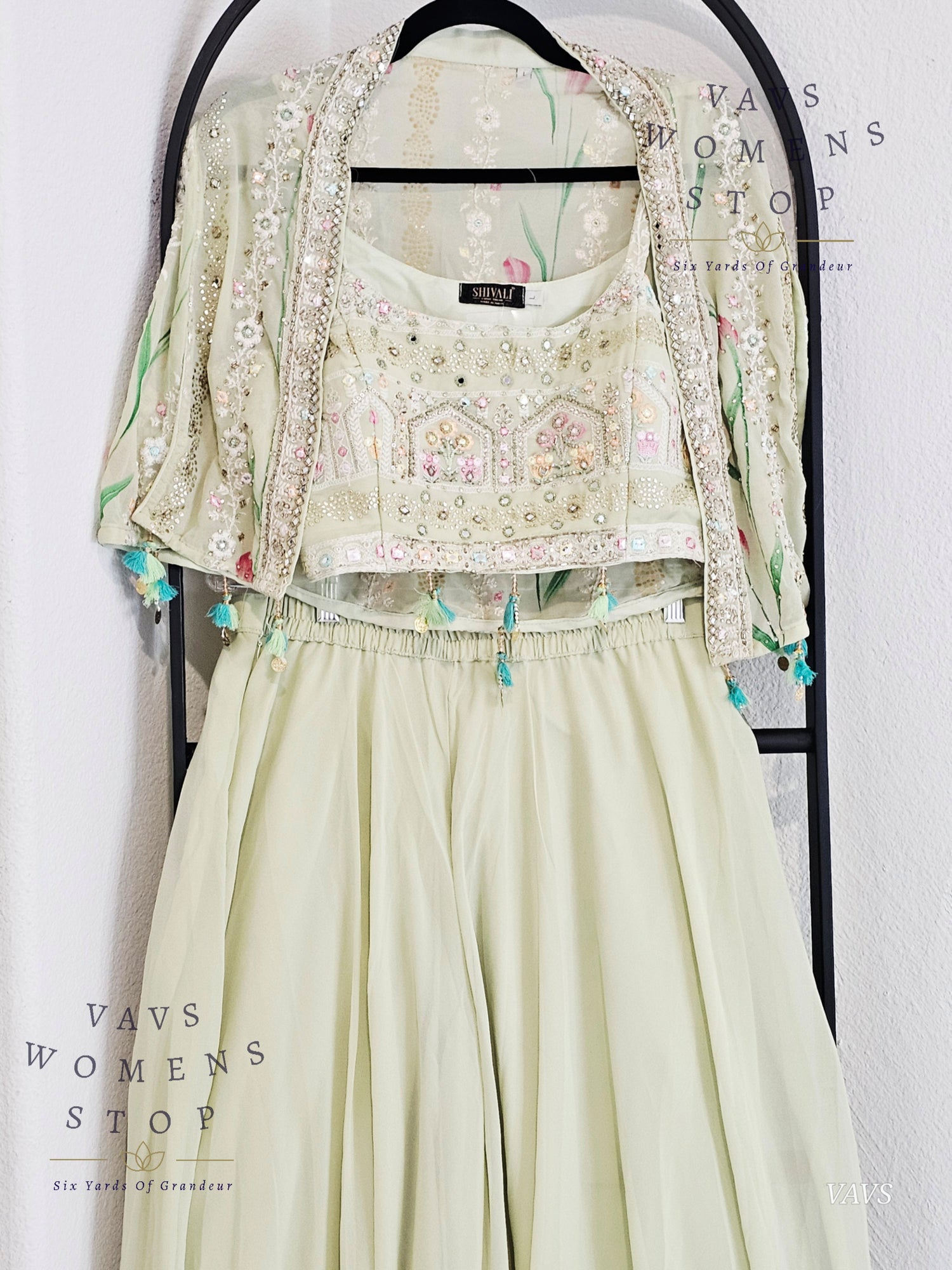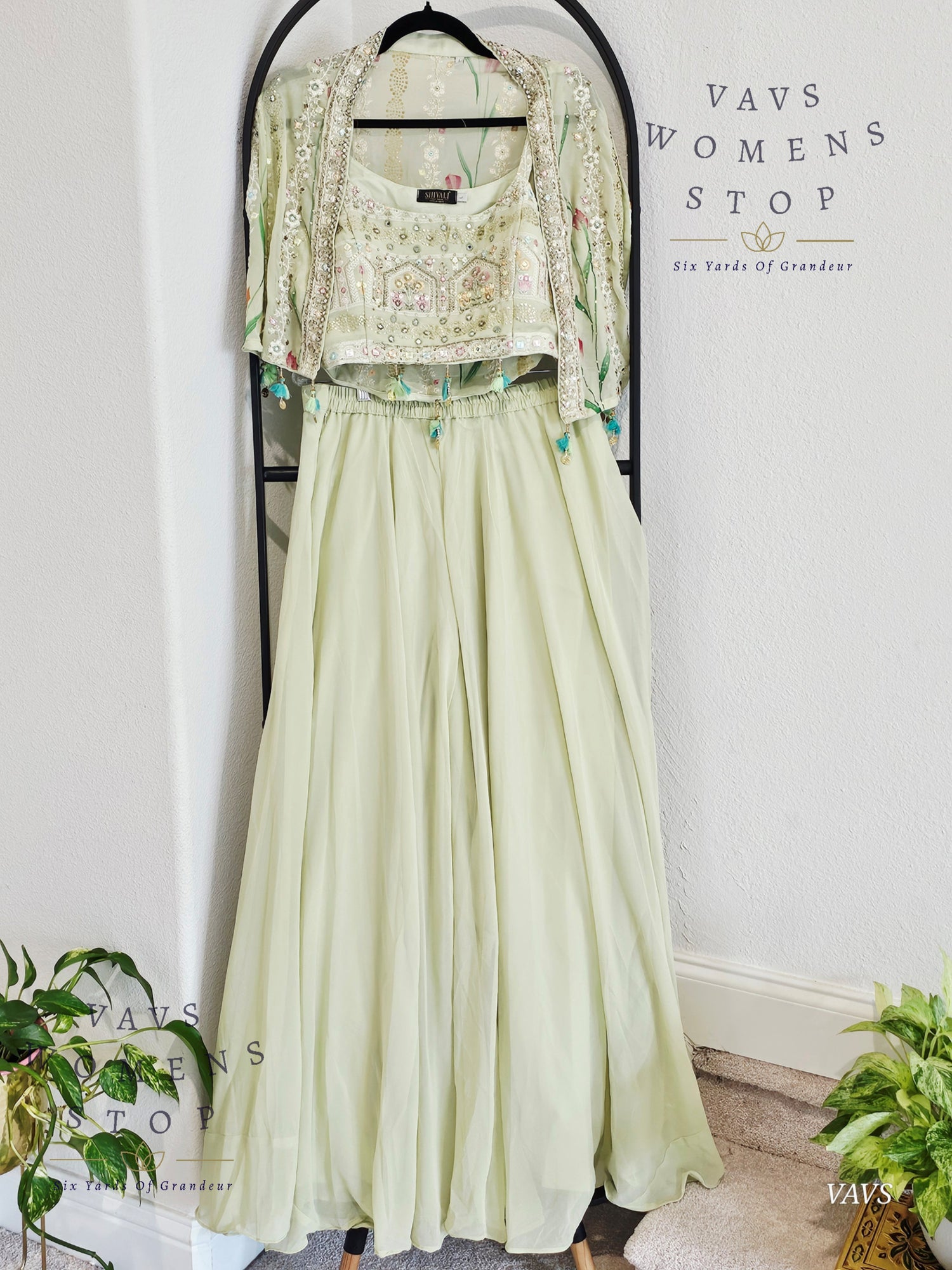 Readymade Partywear 3 Piece Set Overcoat Blouse Palazzo Pant - L
