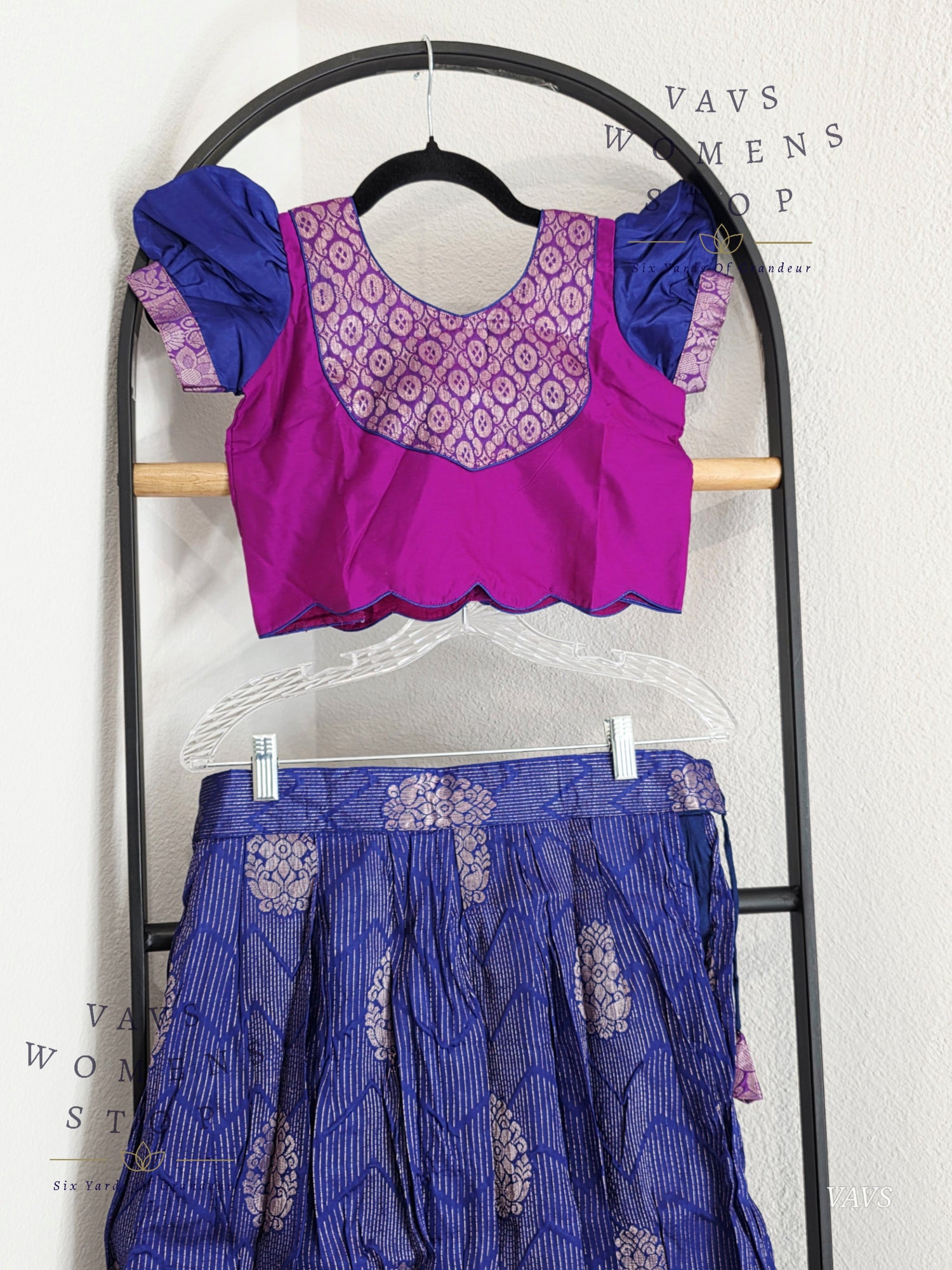 Semi Kanchi Pattu Silk Lehenga Set for Girls – Traditional Pavadai for Ages 9 to 10 | Ready to Ship from USA
