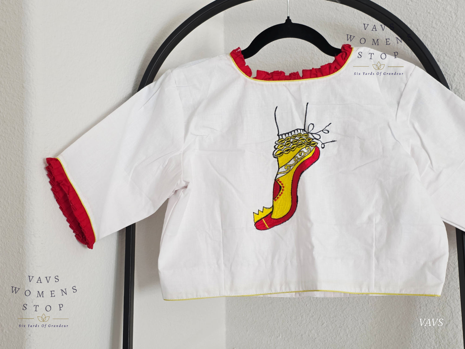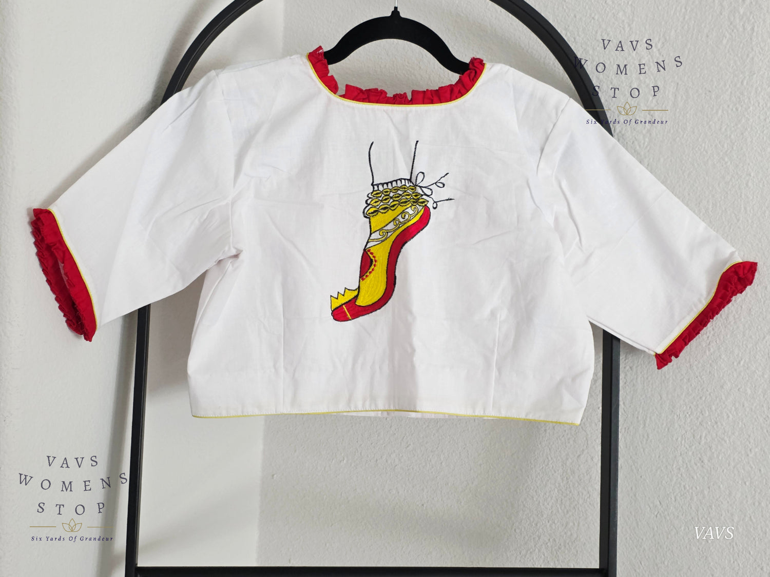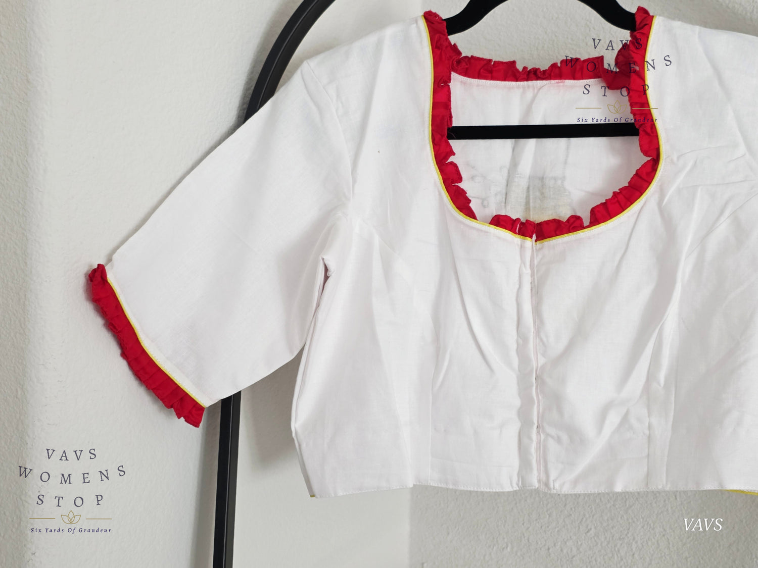 White Shade Soft Cotton Embroidered Premium Tailored Designer Blouse
